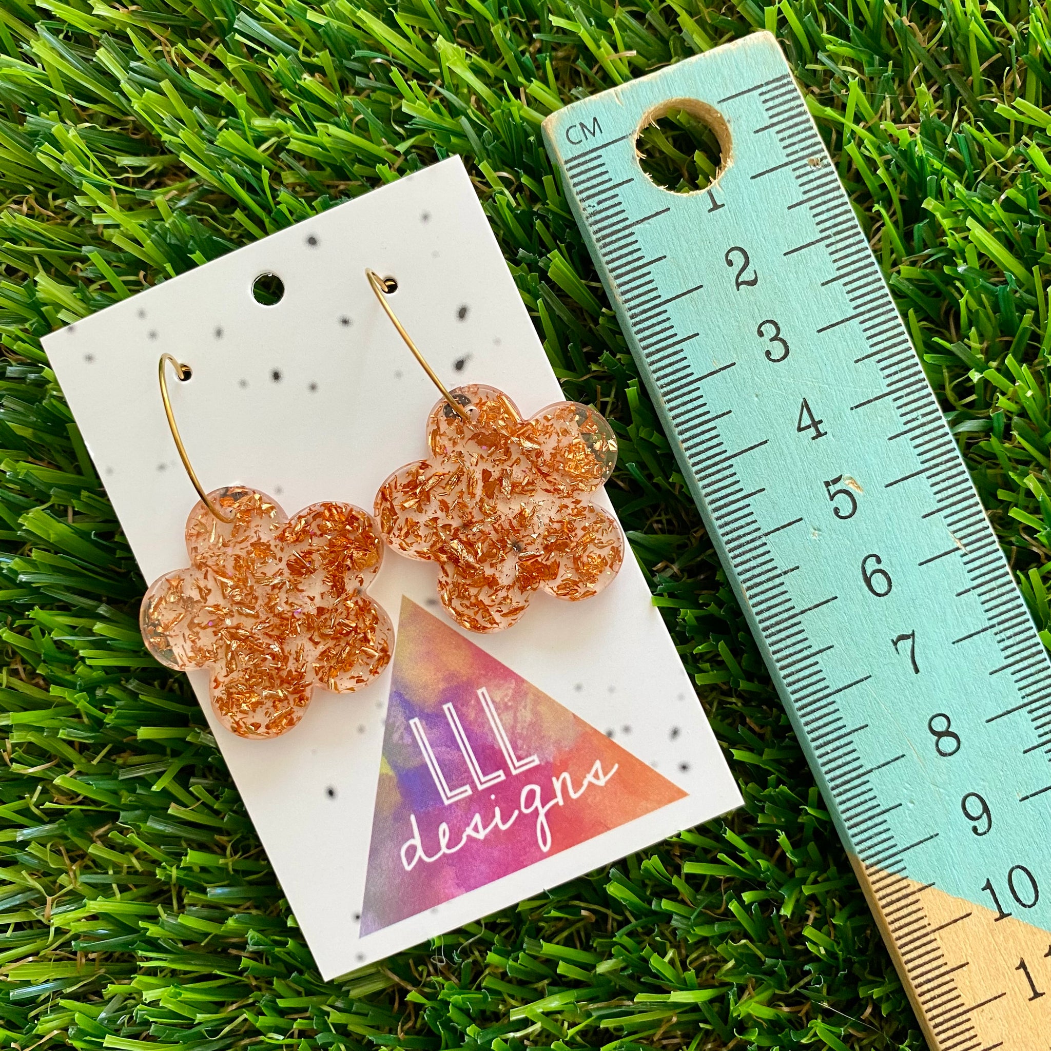 Resin Earrings - Copper Foil Solid Daisy Featuring a Gold Hoop!