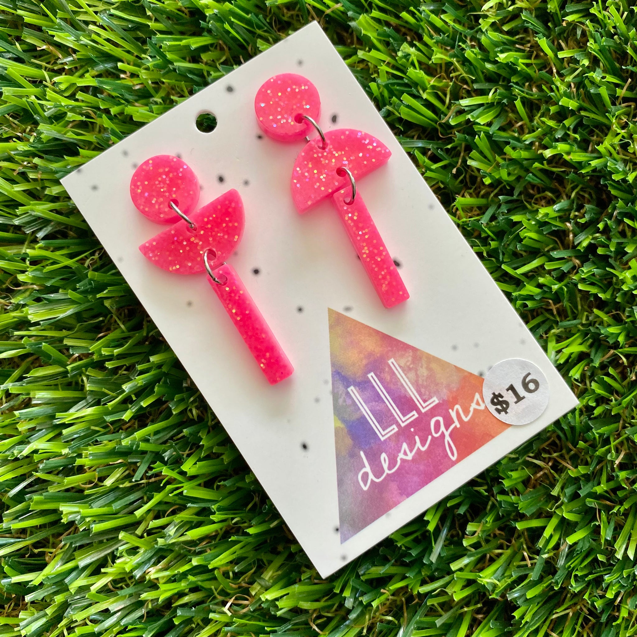 Resin Earrings - Glitter Pink Totem Pole Dangles!