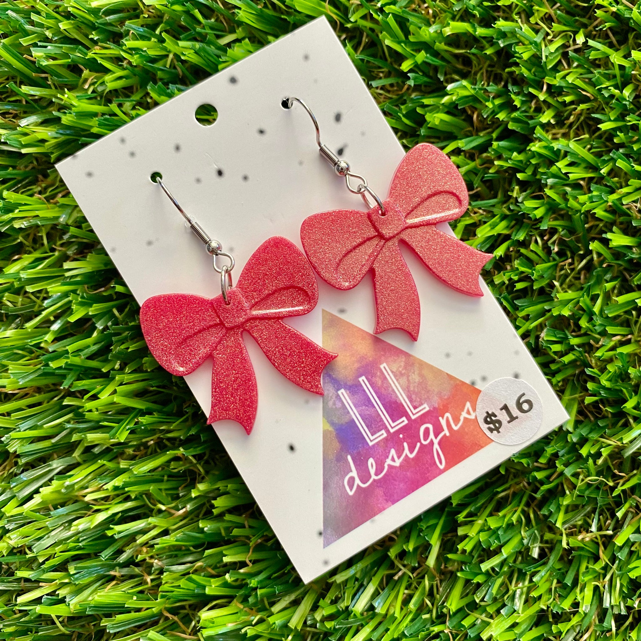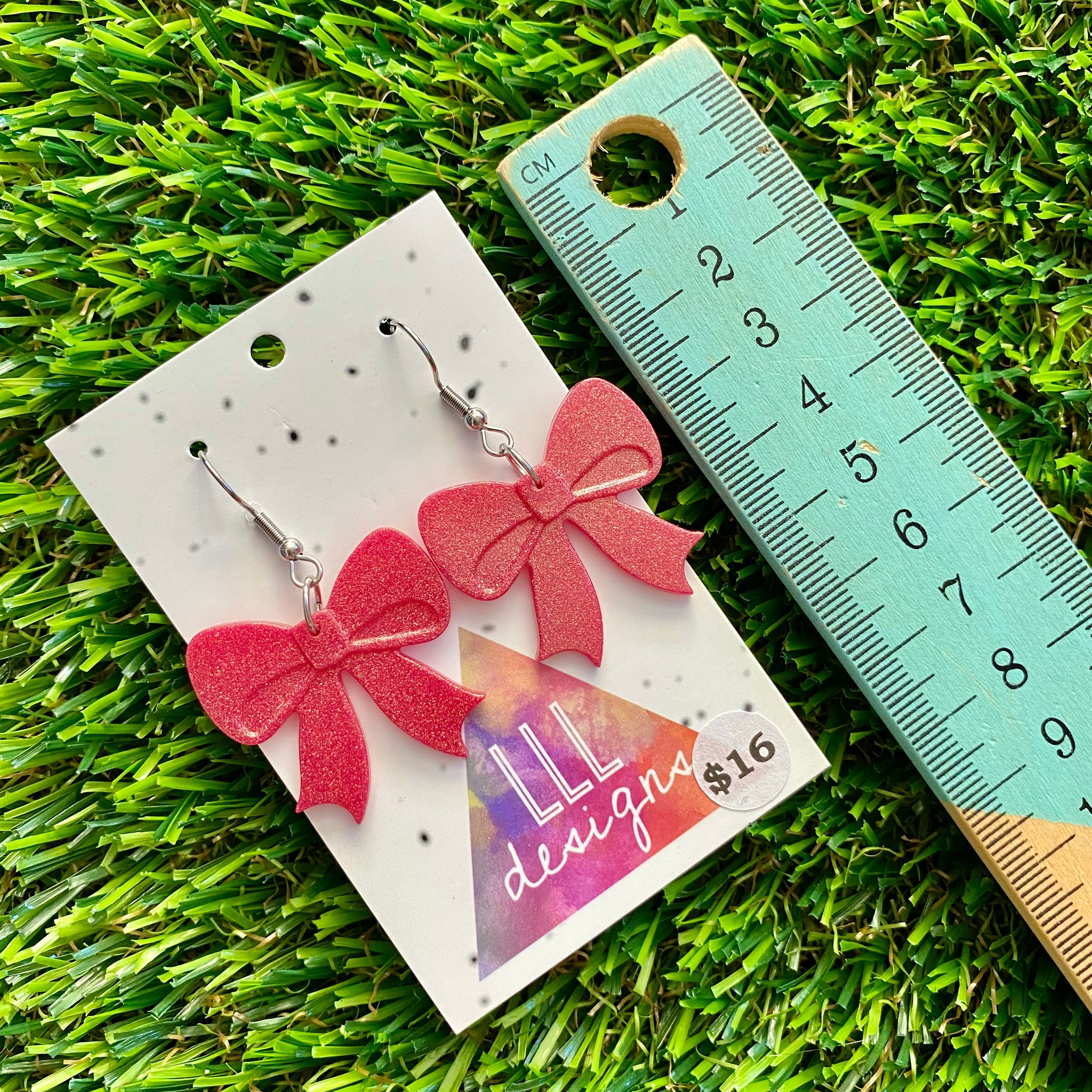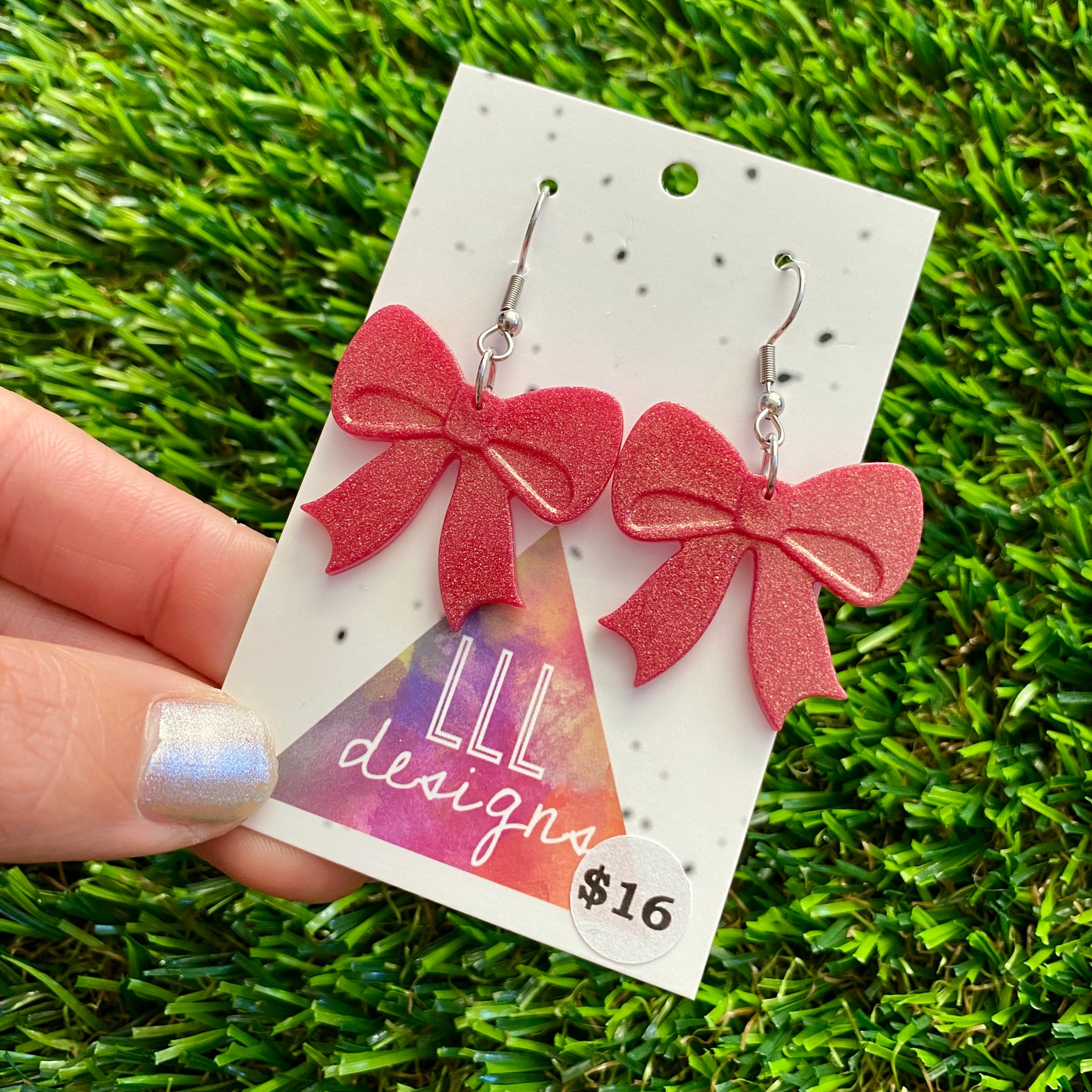 Resin Earrings - Glitter Red Bows Featuring a Hook Top!