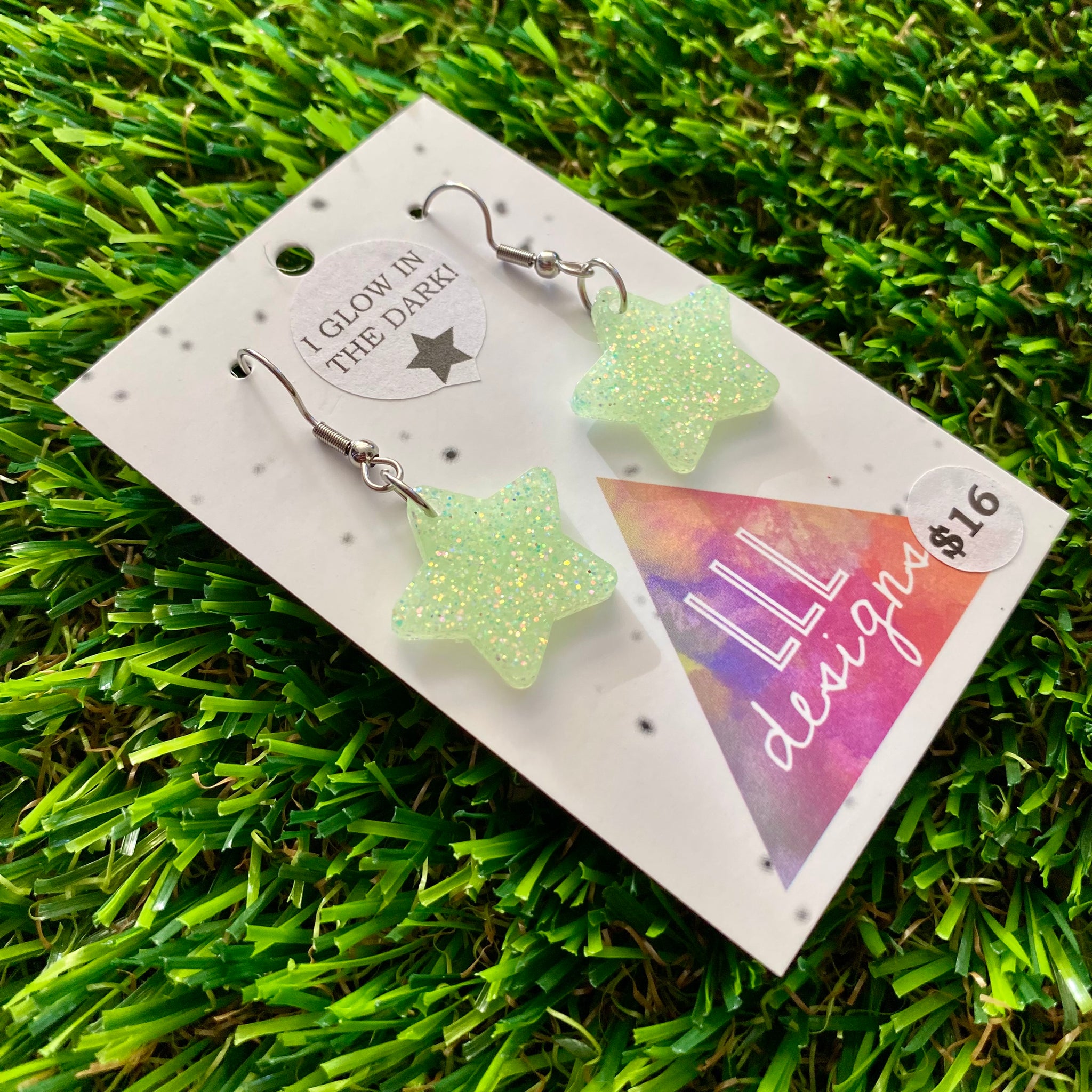 Resin Earrings - Glow Stars Featuring a Hook Top!