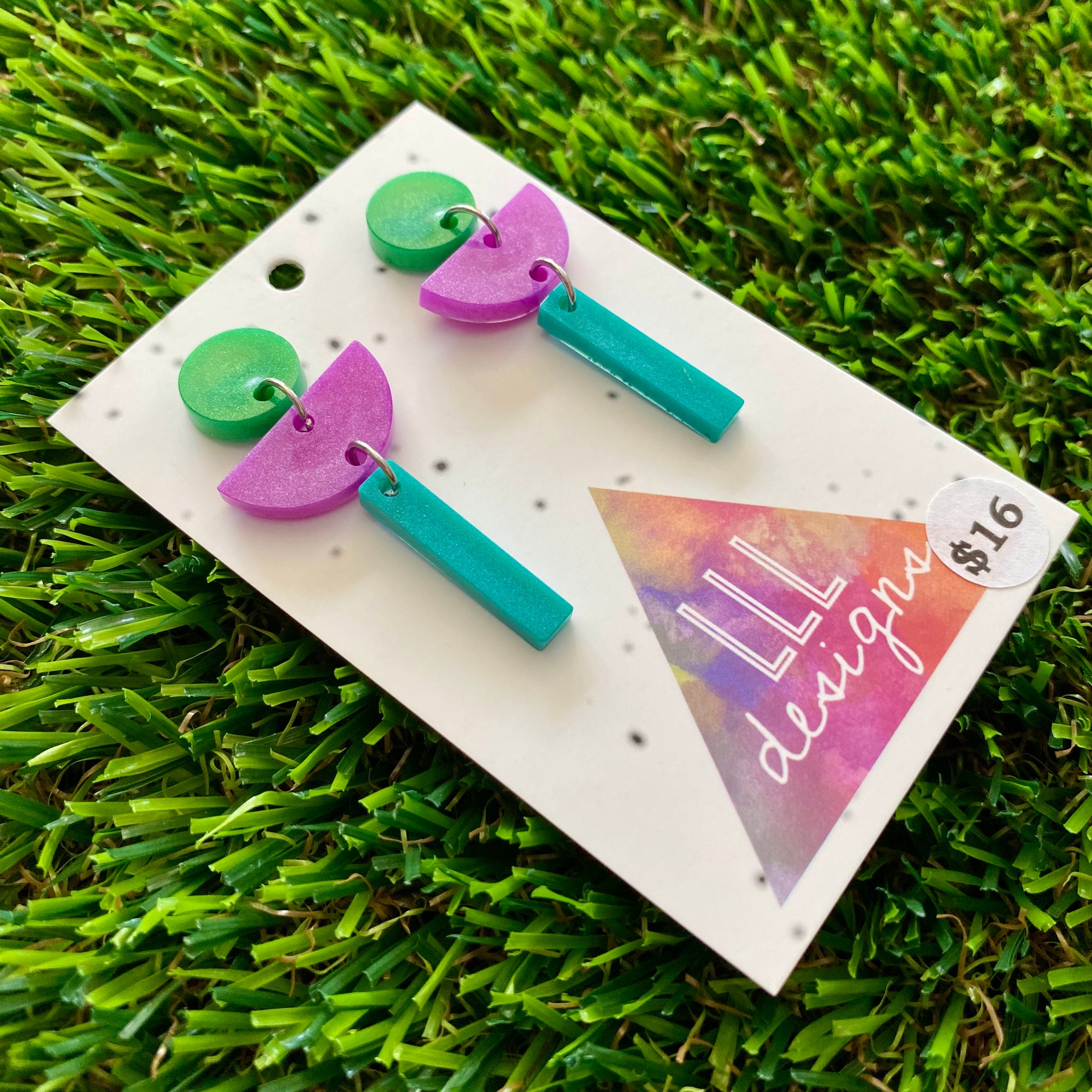Resin Earrings - Green, Purple, Teal Totem Pole Dangles!