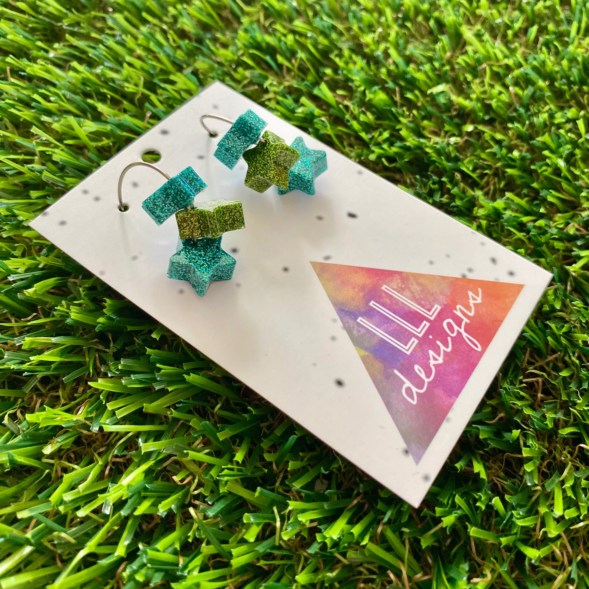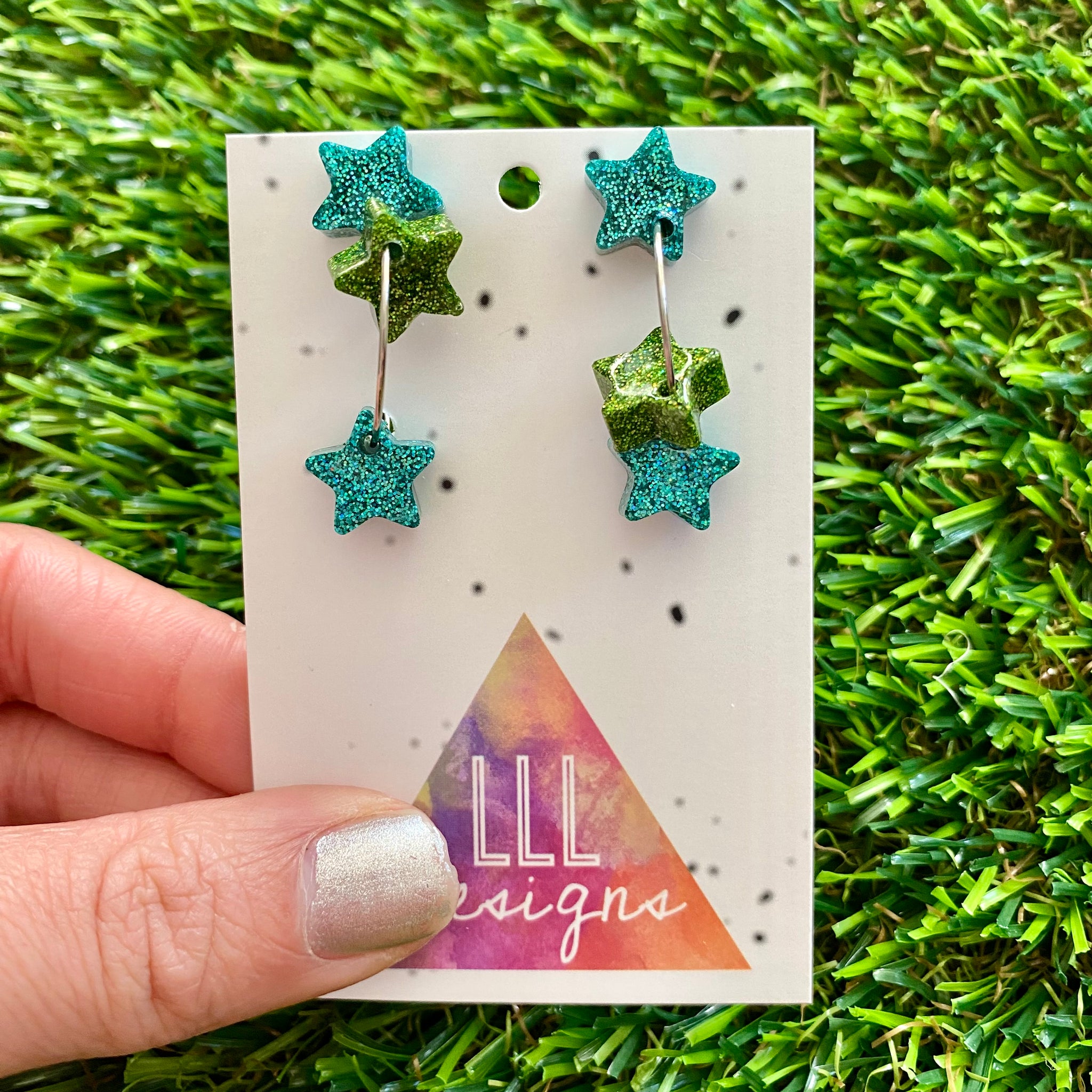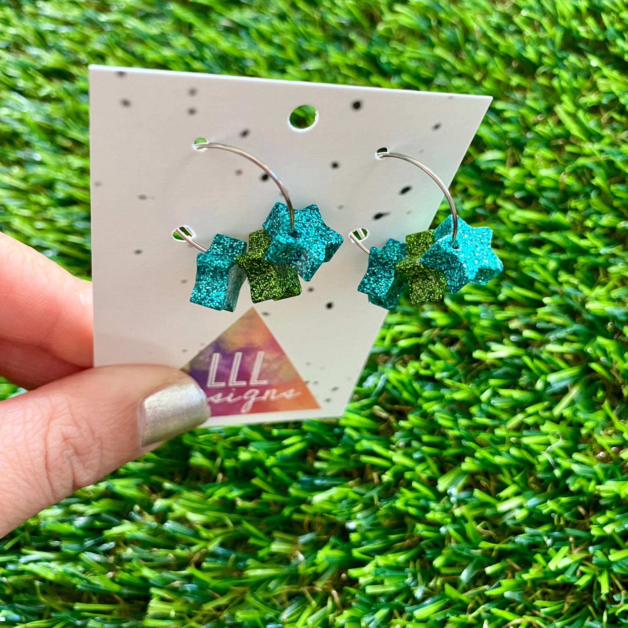 Resin Earrings - Hoop La Trio of Glitter Stars Featuring a Silver Hoop!