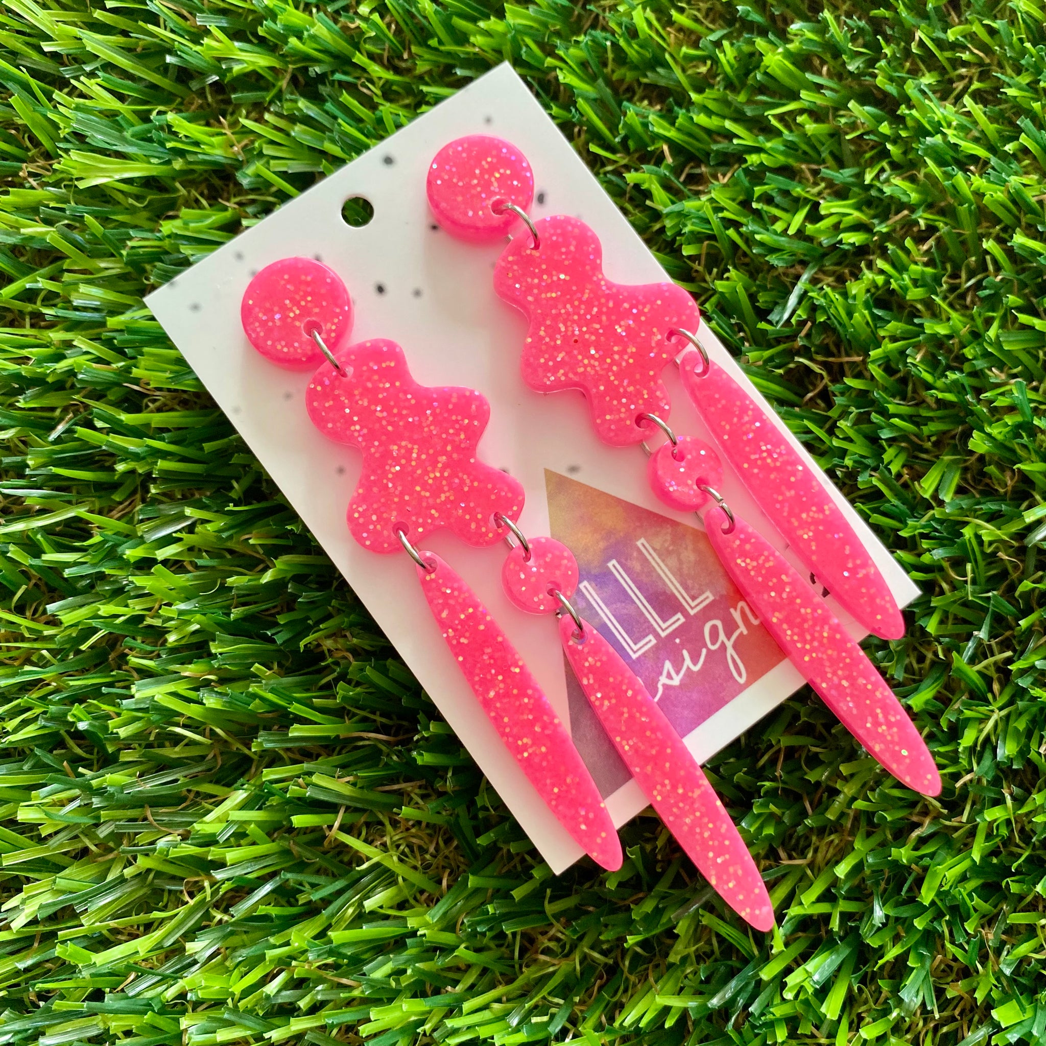 Resin Earrings - Neon Glitter Pink Wiggle Woo!