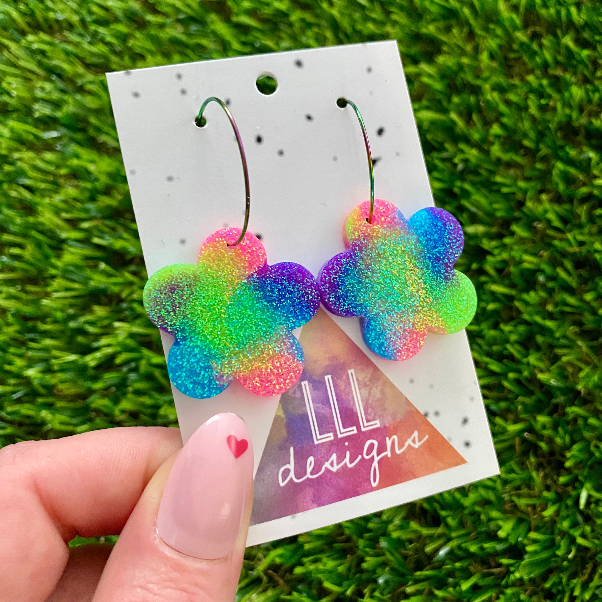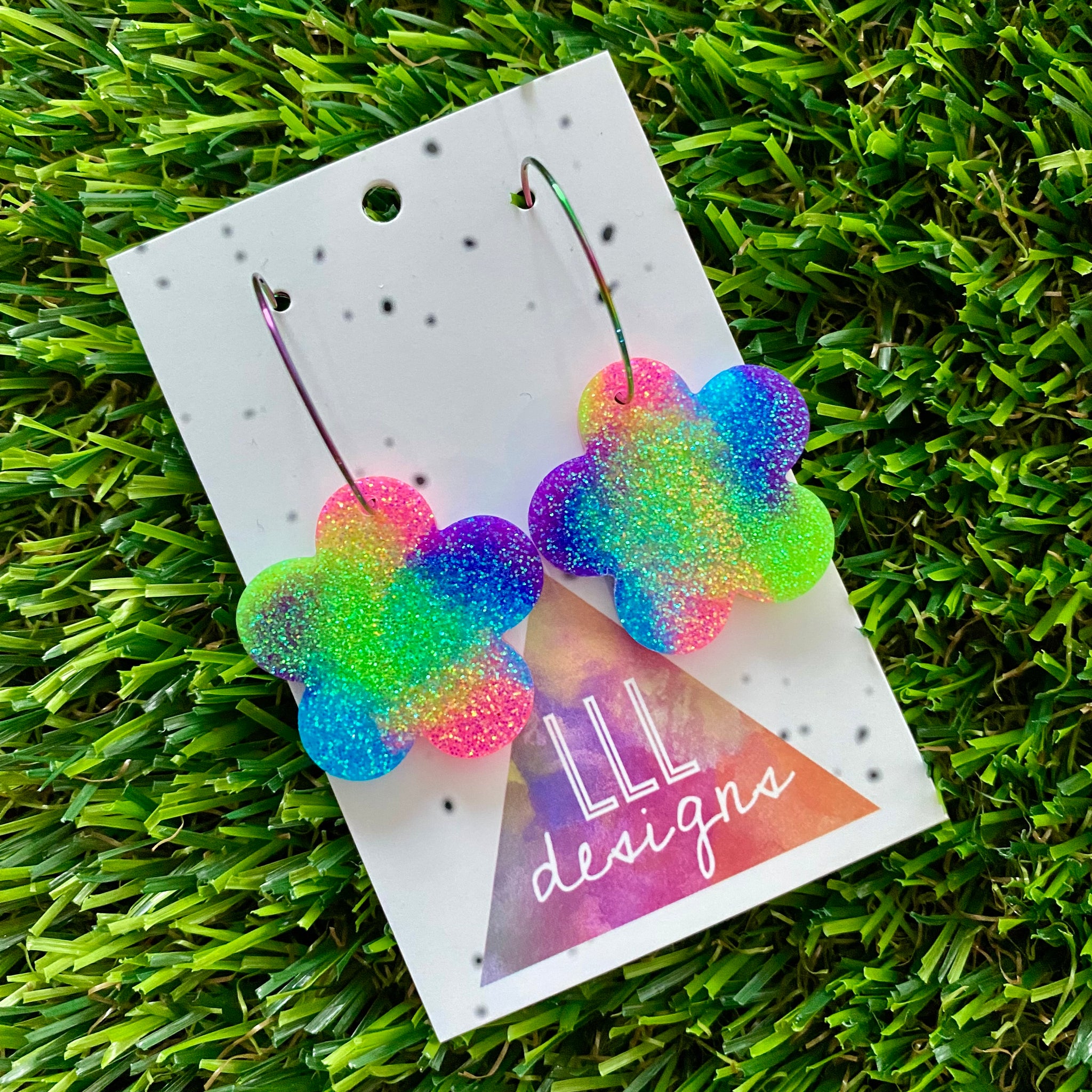 Resin Earrings - Neon Vibrant Solid Daisy Featuring a Rainbow Hoop!