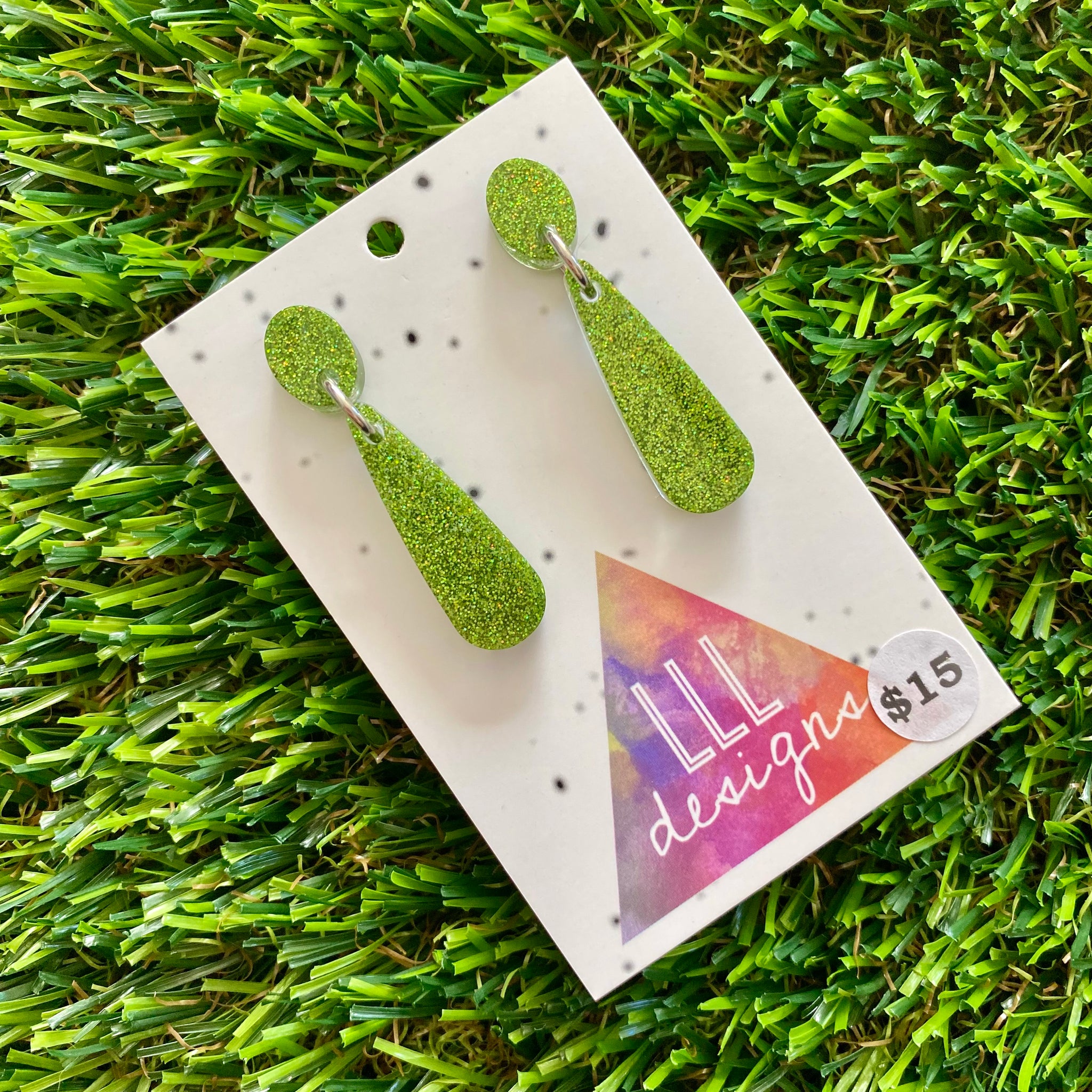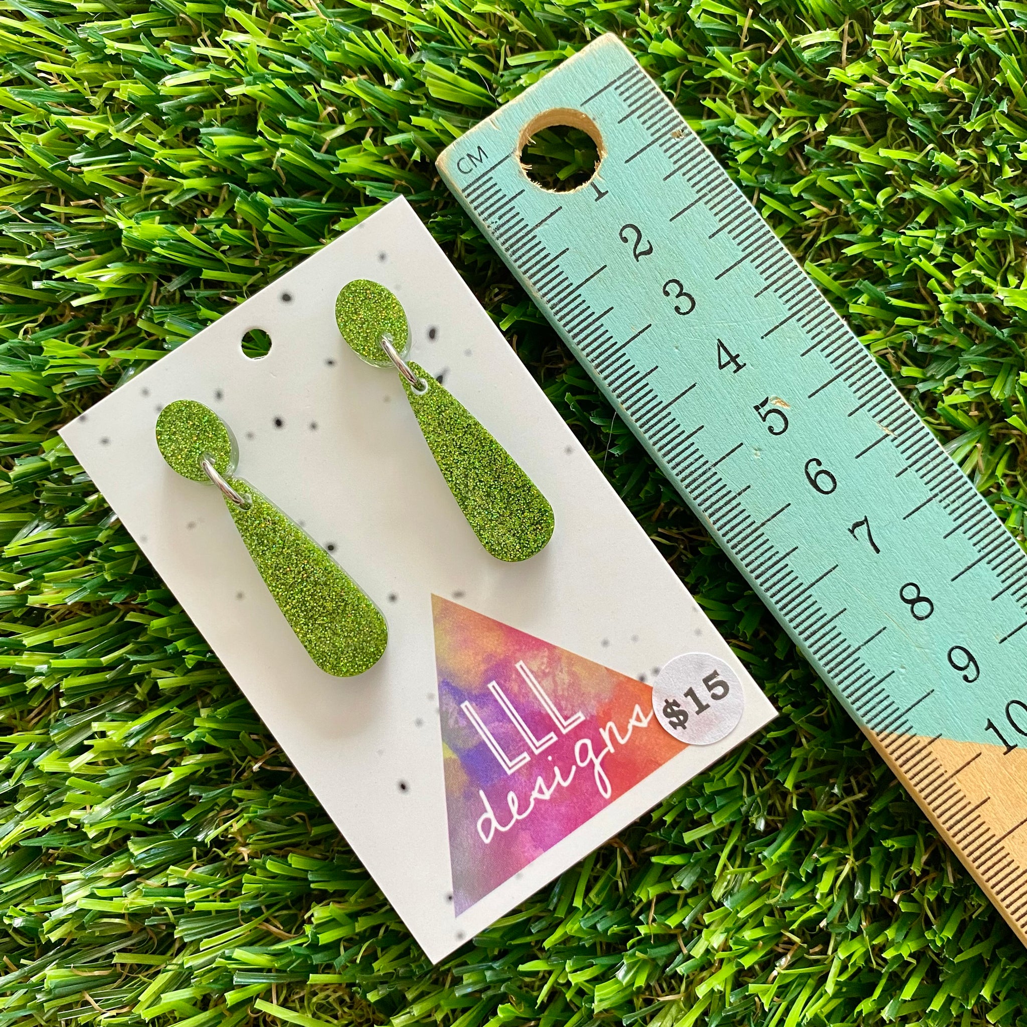 Resin Earrings - Olive Glitter Droplet Dangles!