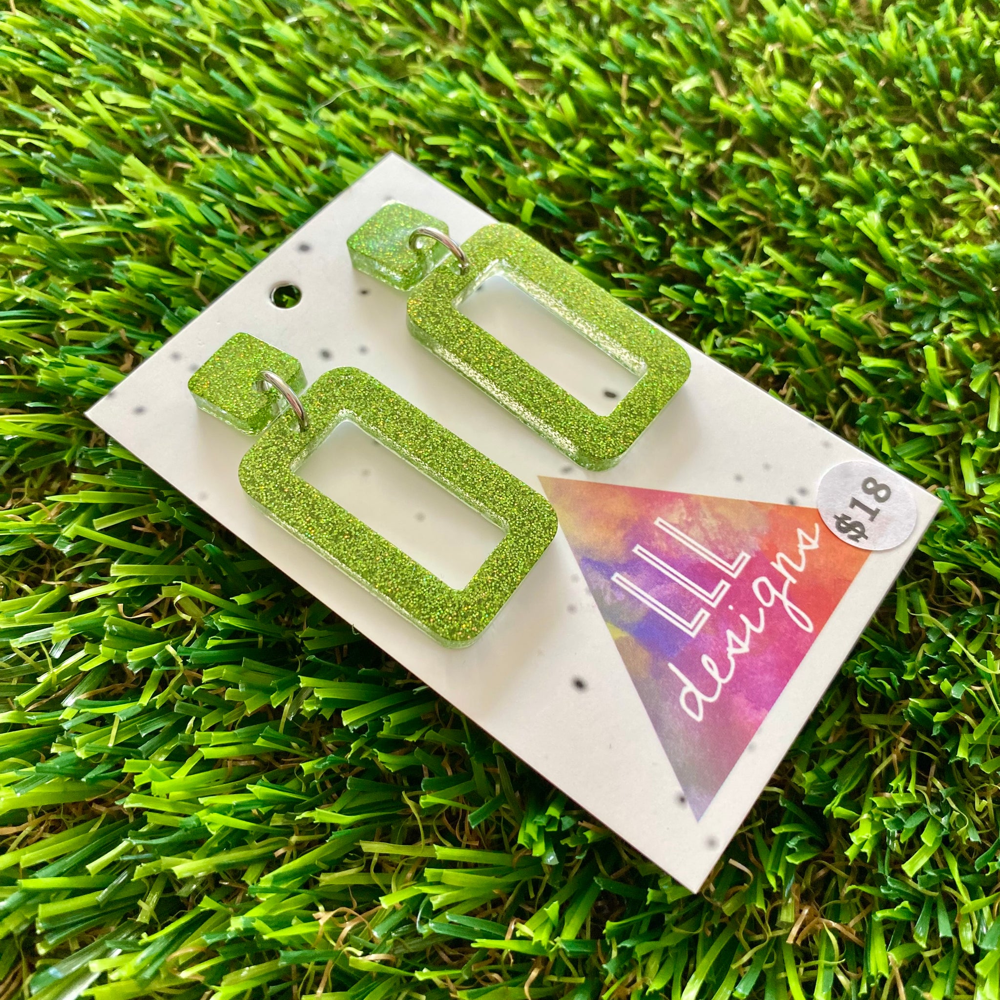 Resin Earrings - Olive Glitter Rectangle Dangles!