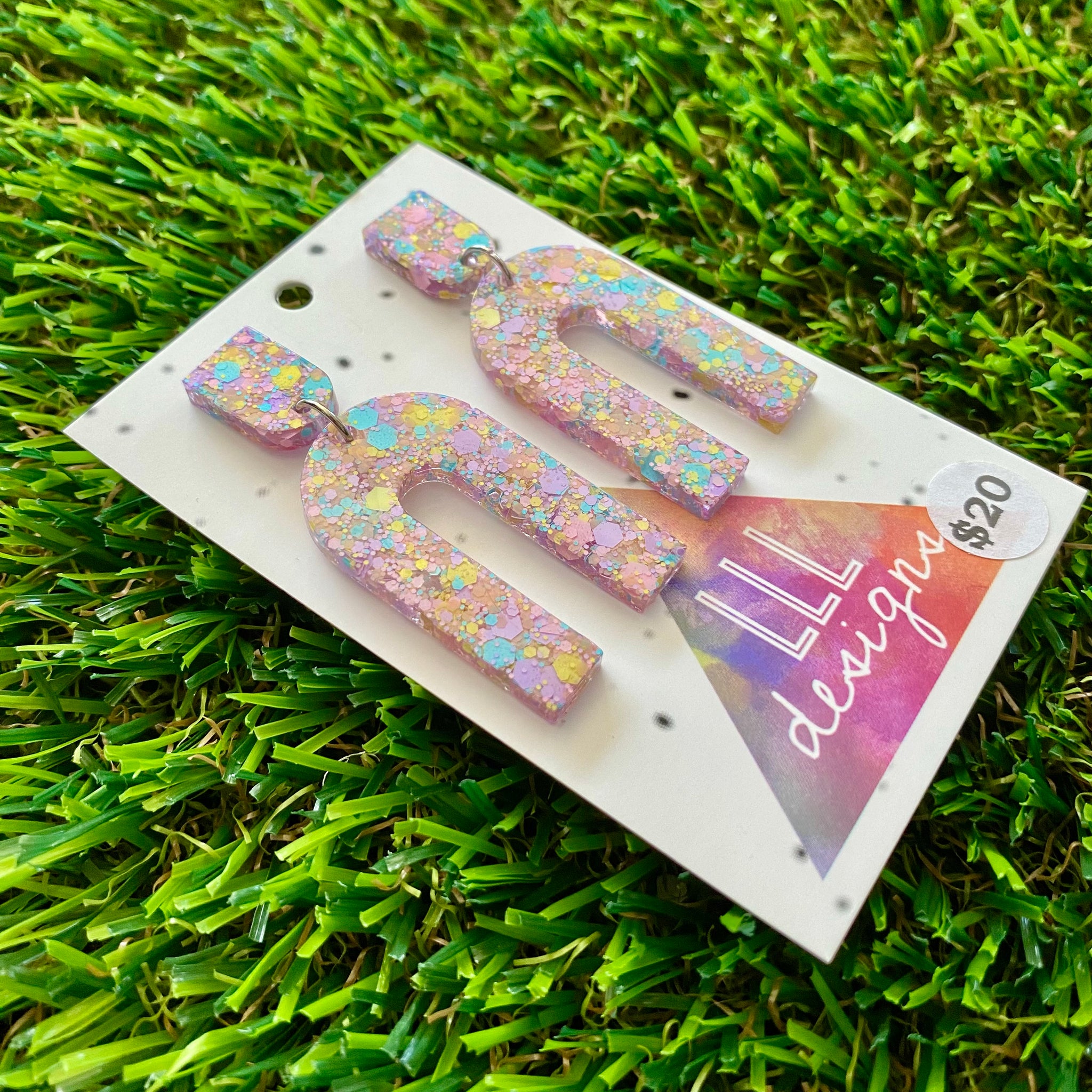 Resin Earrings - Pastel Confetti Open Arches Dangles!