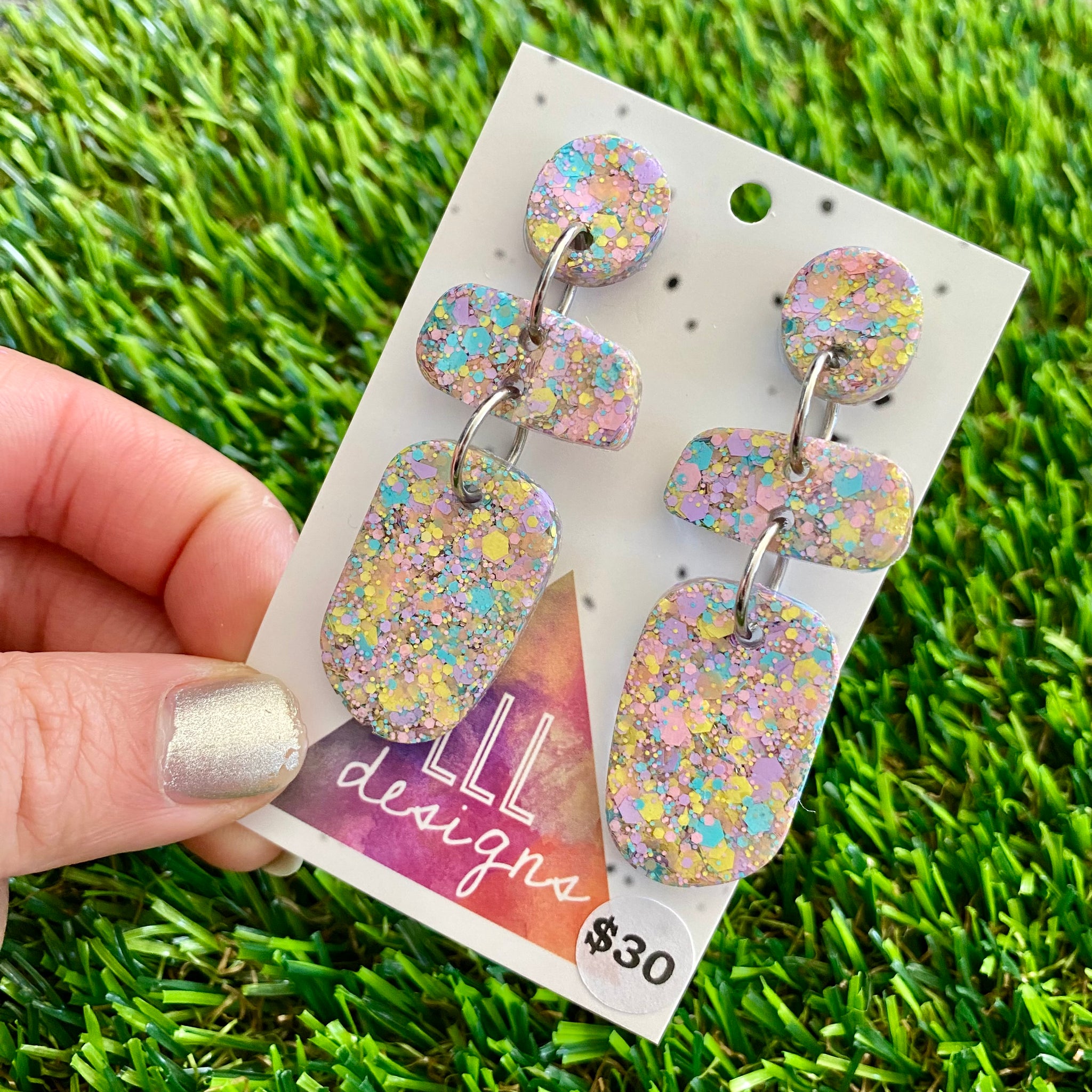 Resin Earrings - Pastel Confetti Pebble Dangles - Betty Design!