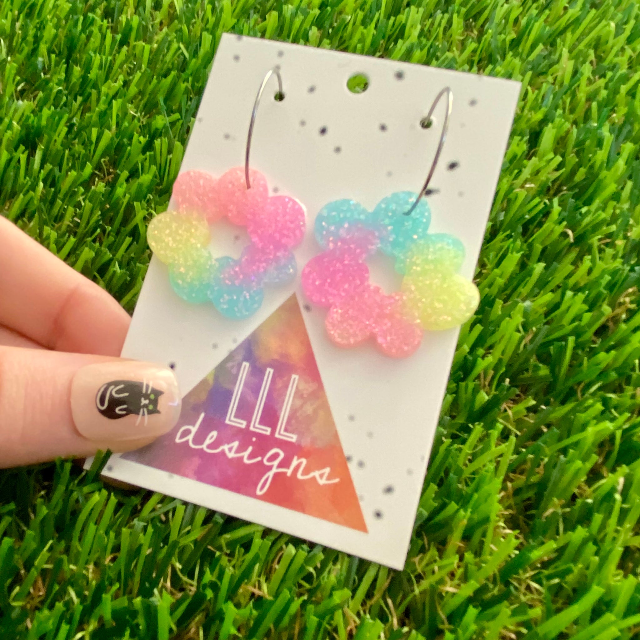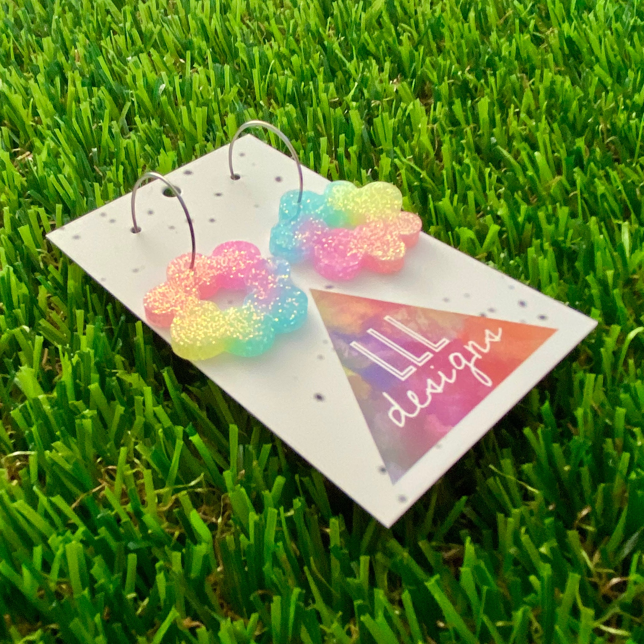 Resin Earrings - Pastel Floral Wreath Featuring a Silver Hoop! (2)