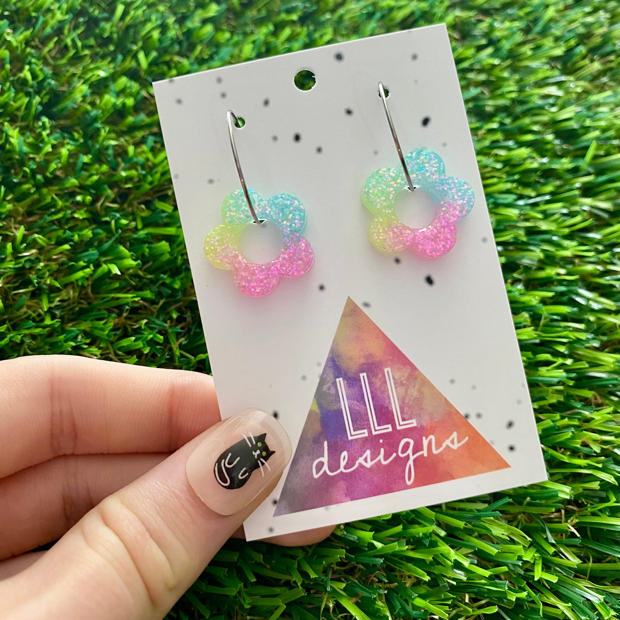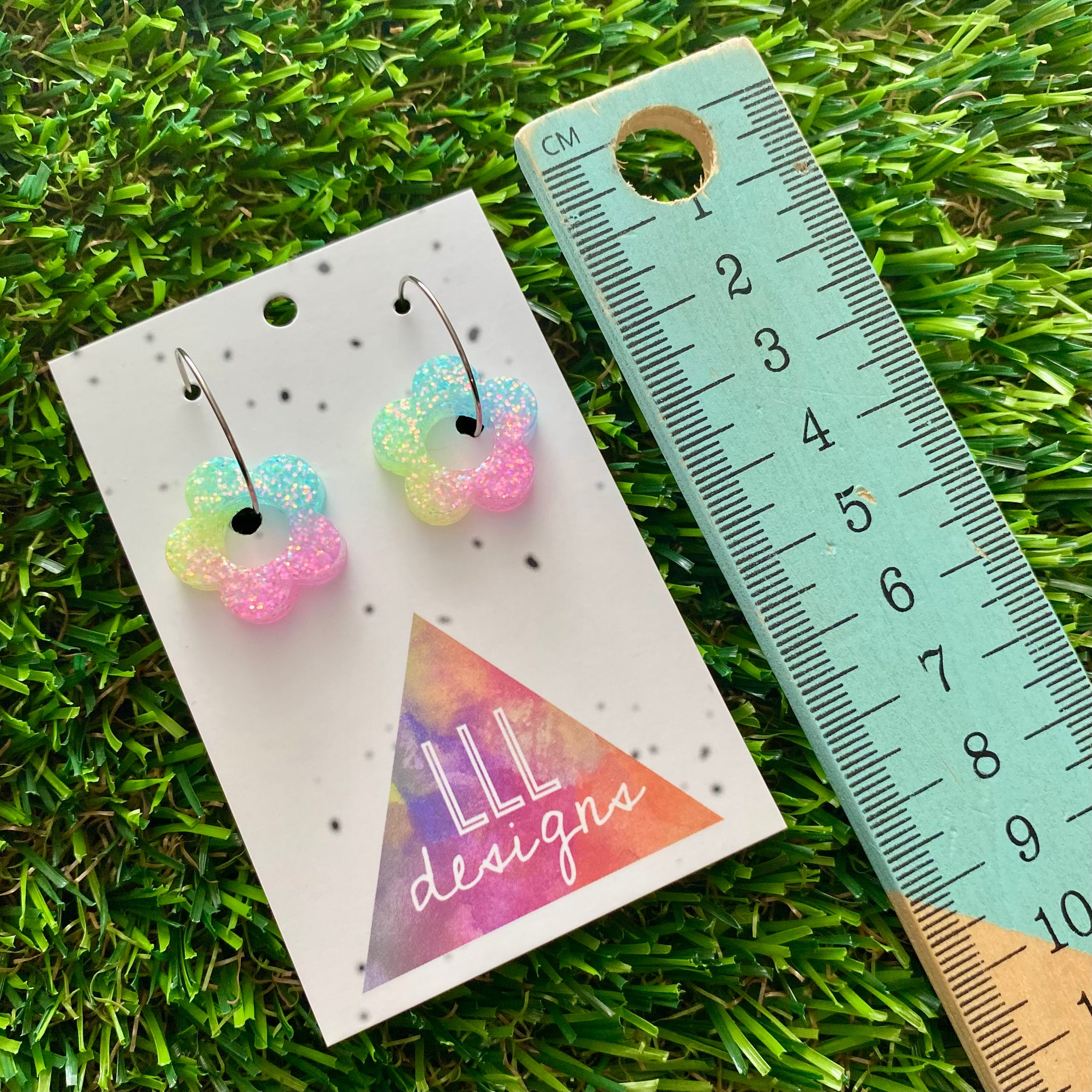 Resin Earrings - Pastel Mini Daisy Featuring a Silver Hoop! (4)