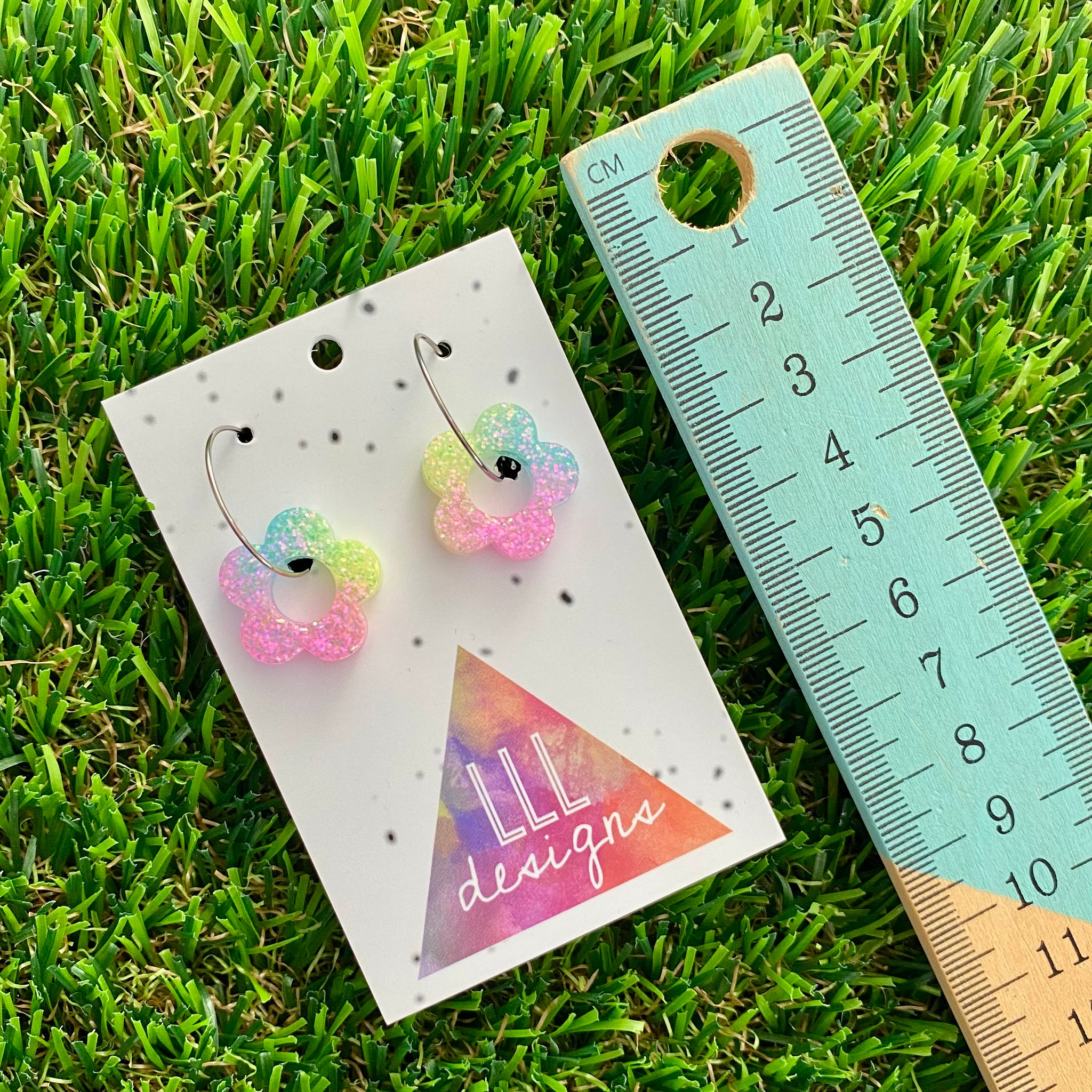 Resin Earrings - Pastel Mini Daisy Featuring a Silver Hoop! (5)