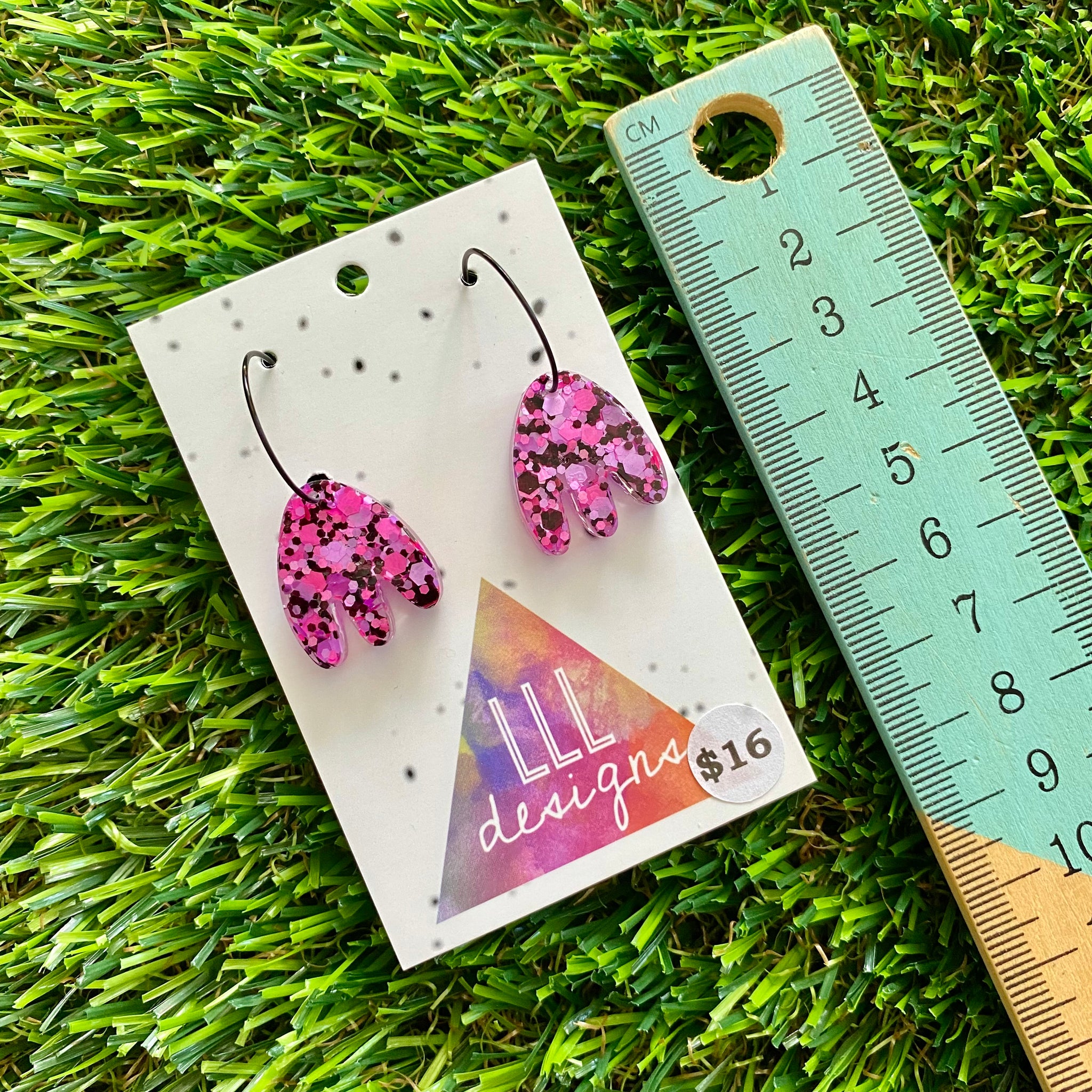 Resin Earrings - Pink and Black Confetti Dangles - Fuchsia Dangles Featuring a Black Hoop!