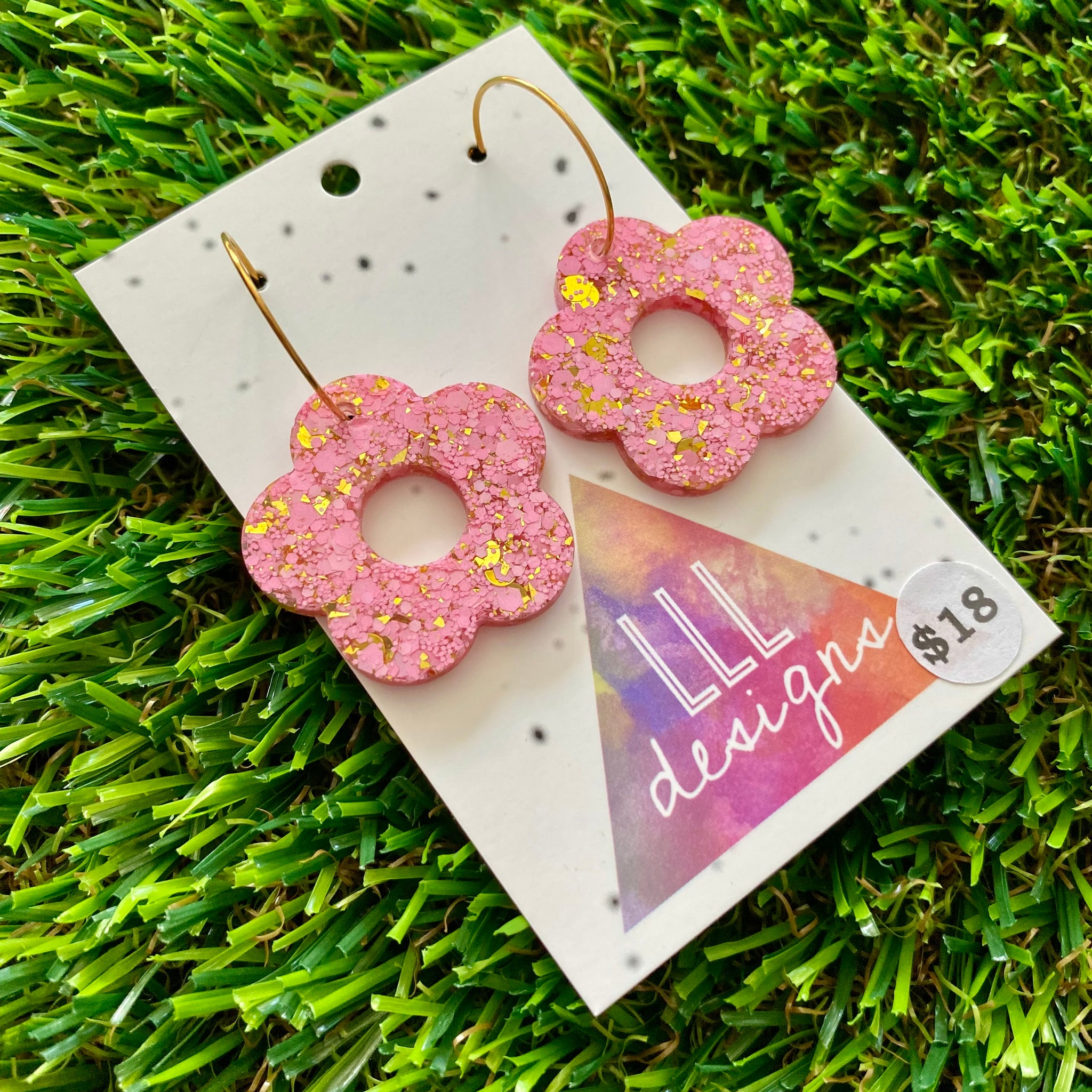 Resin Earrings - Pink and Gold Confetti Dangles - Cut Out Daisy Featuring a Gold Hoop!