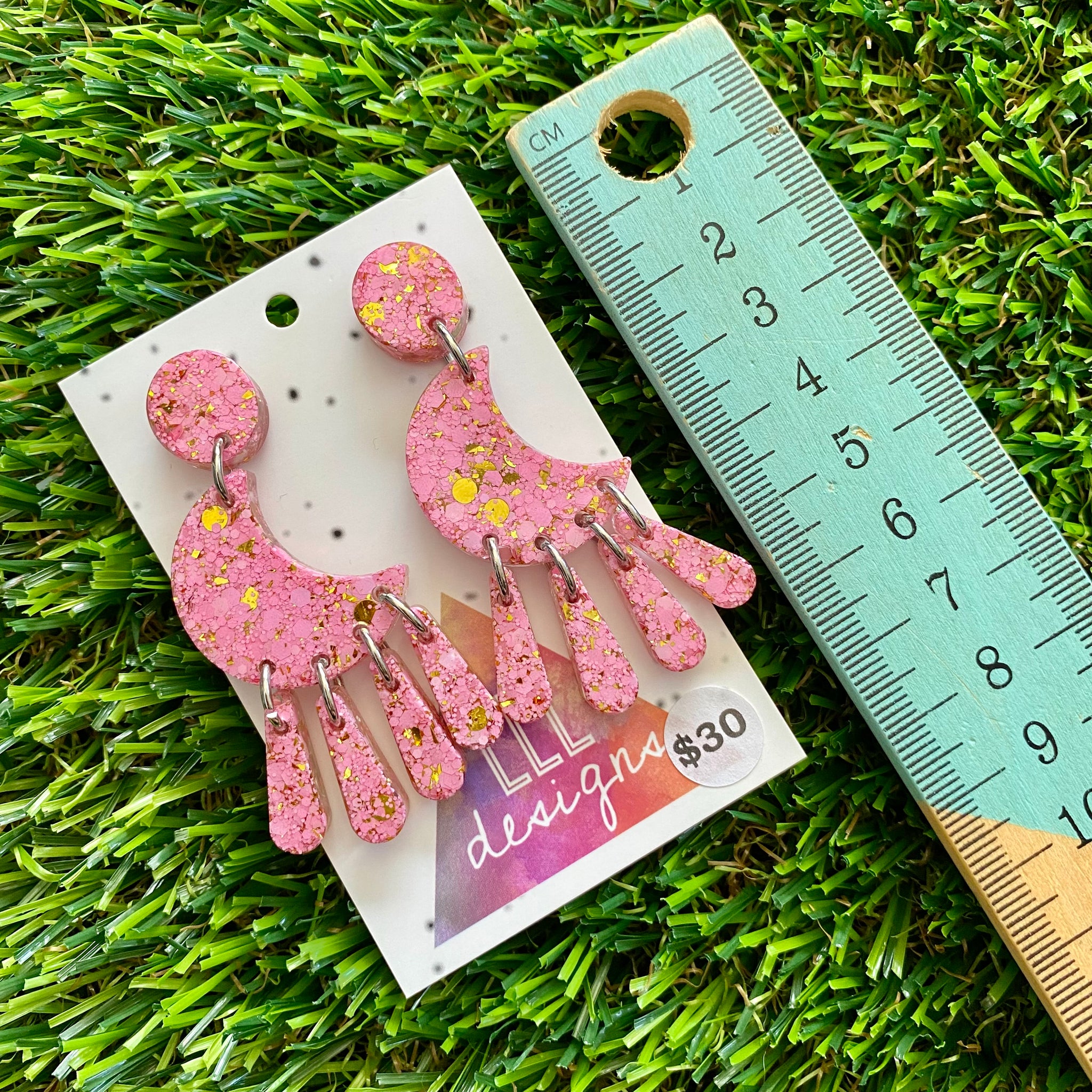 Resin Earrings - Pink and Gold Confetti Magical Moon Dangles!
