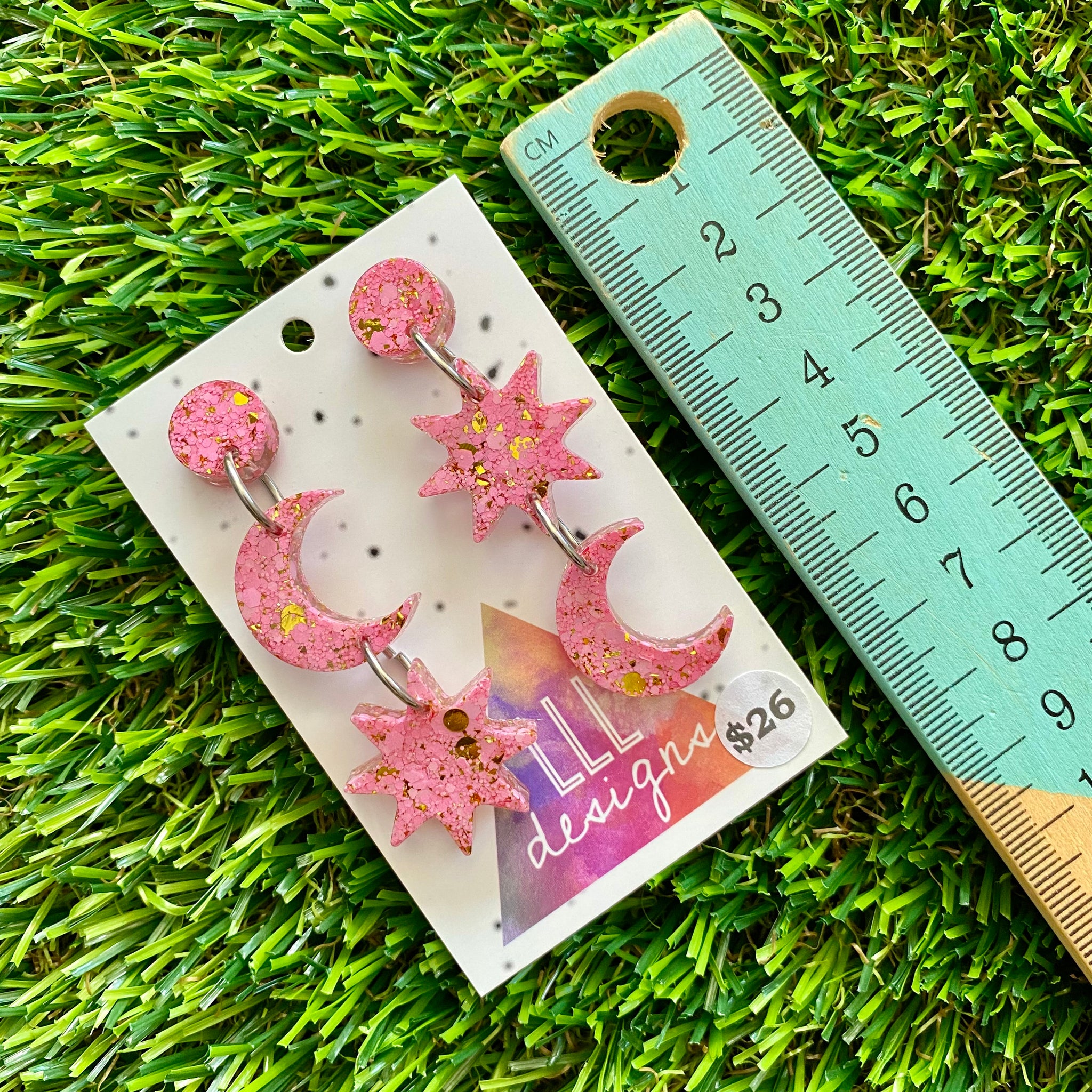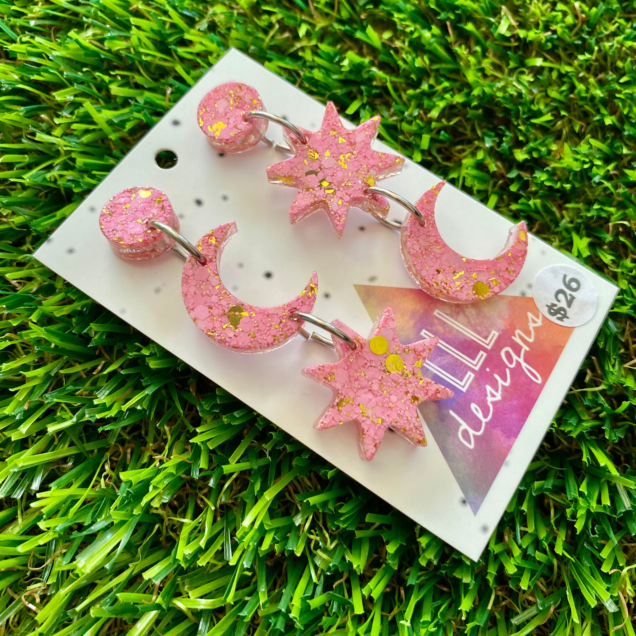 Resin Earrings - Pink and Gold Confetti Star Gazing Dangles!