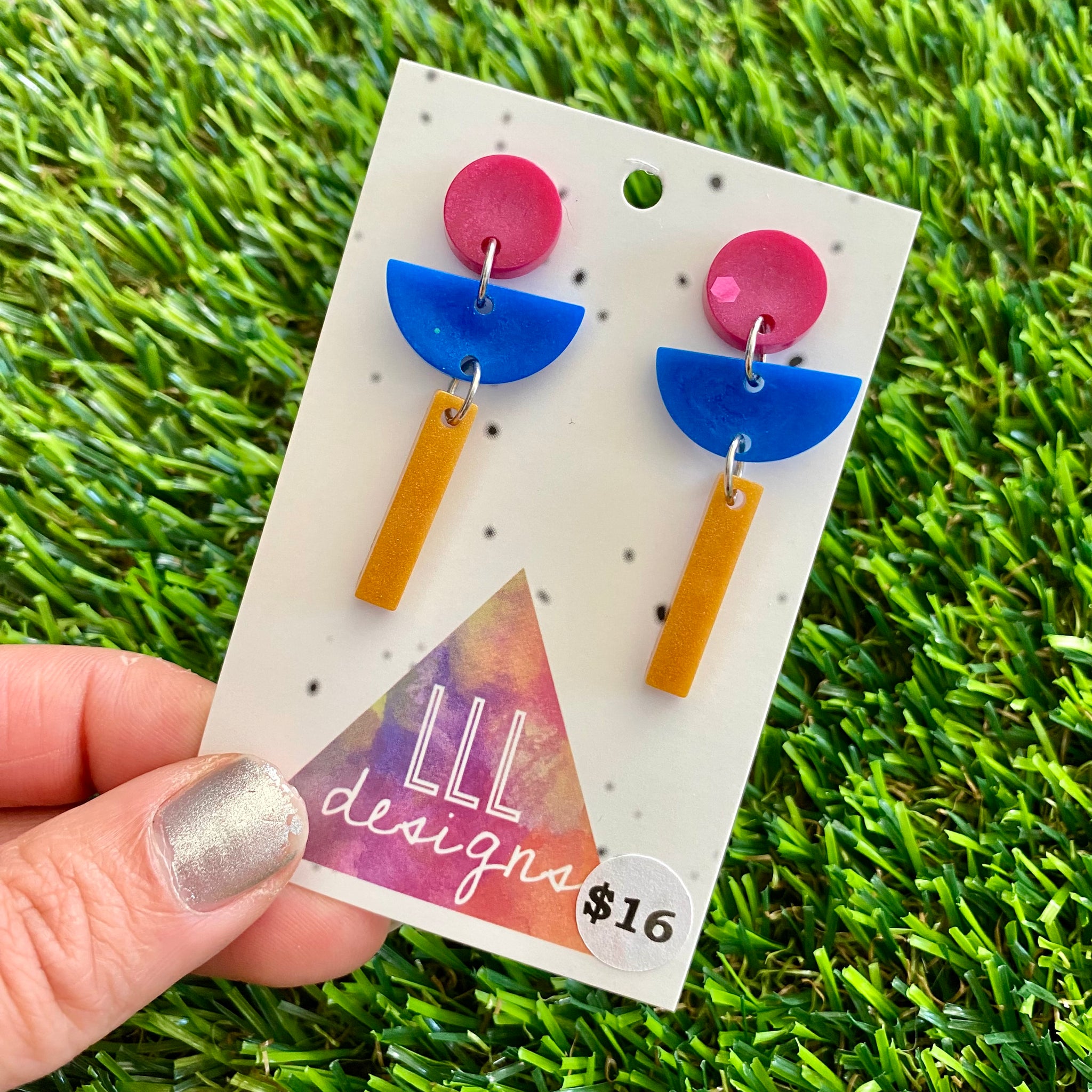 Resin Earrings - Pink, Blue, and Gold Totem Pole Dangles!