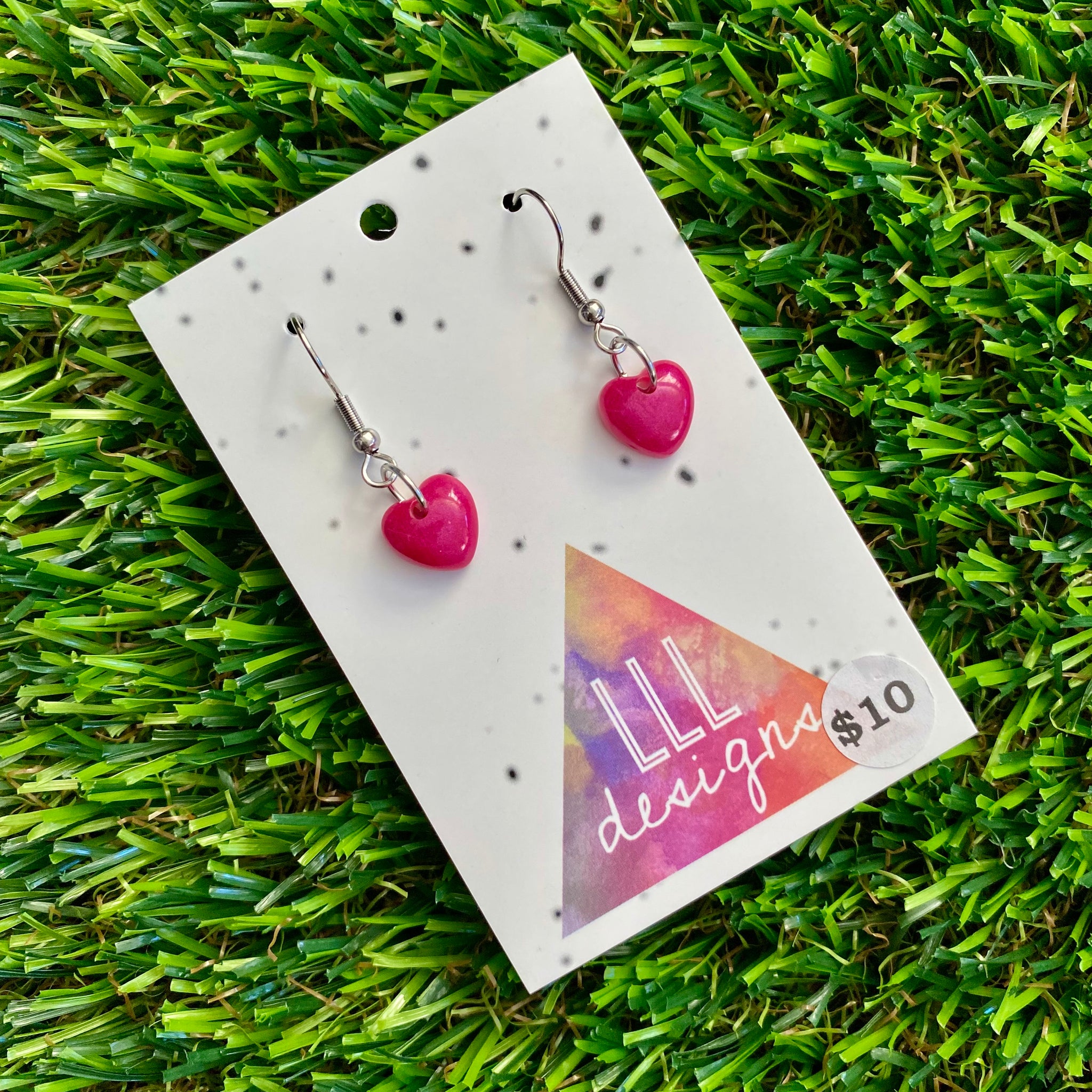 Resin Earrings - Pink Dainty Hearts Featuring a Hook Top!