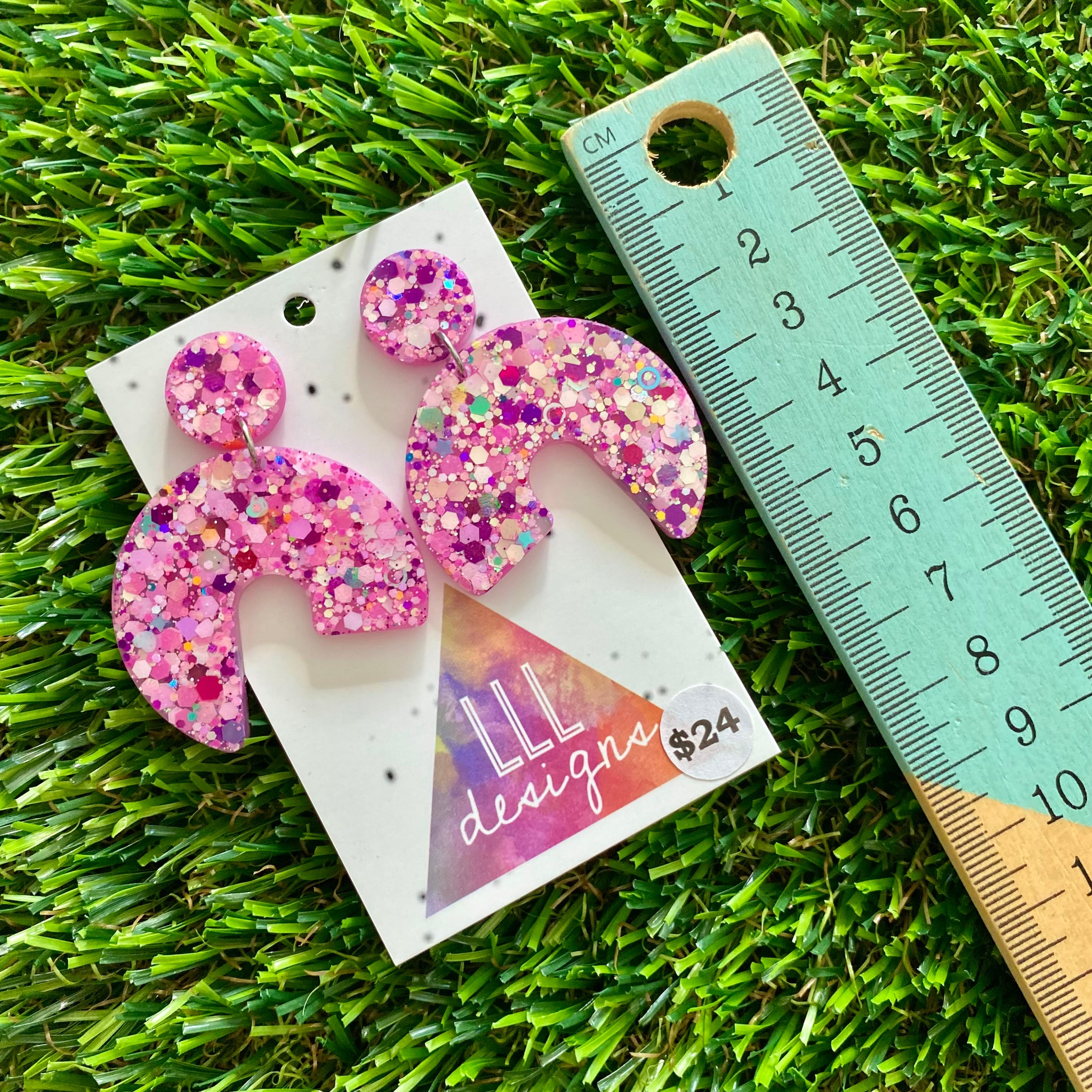 Resin Earrings - Pink Multi Glitter Chameleon Tails Dangles!