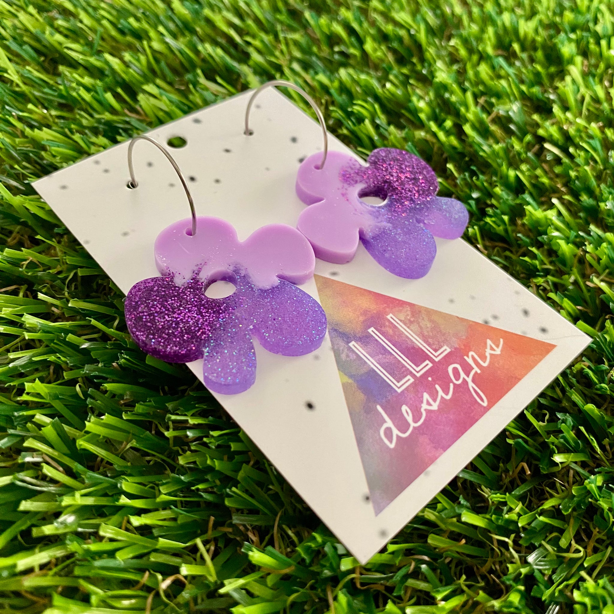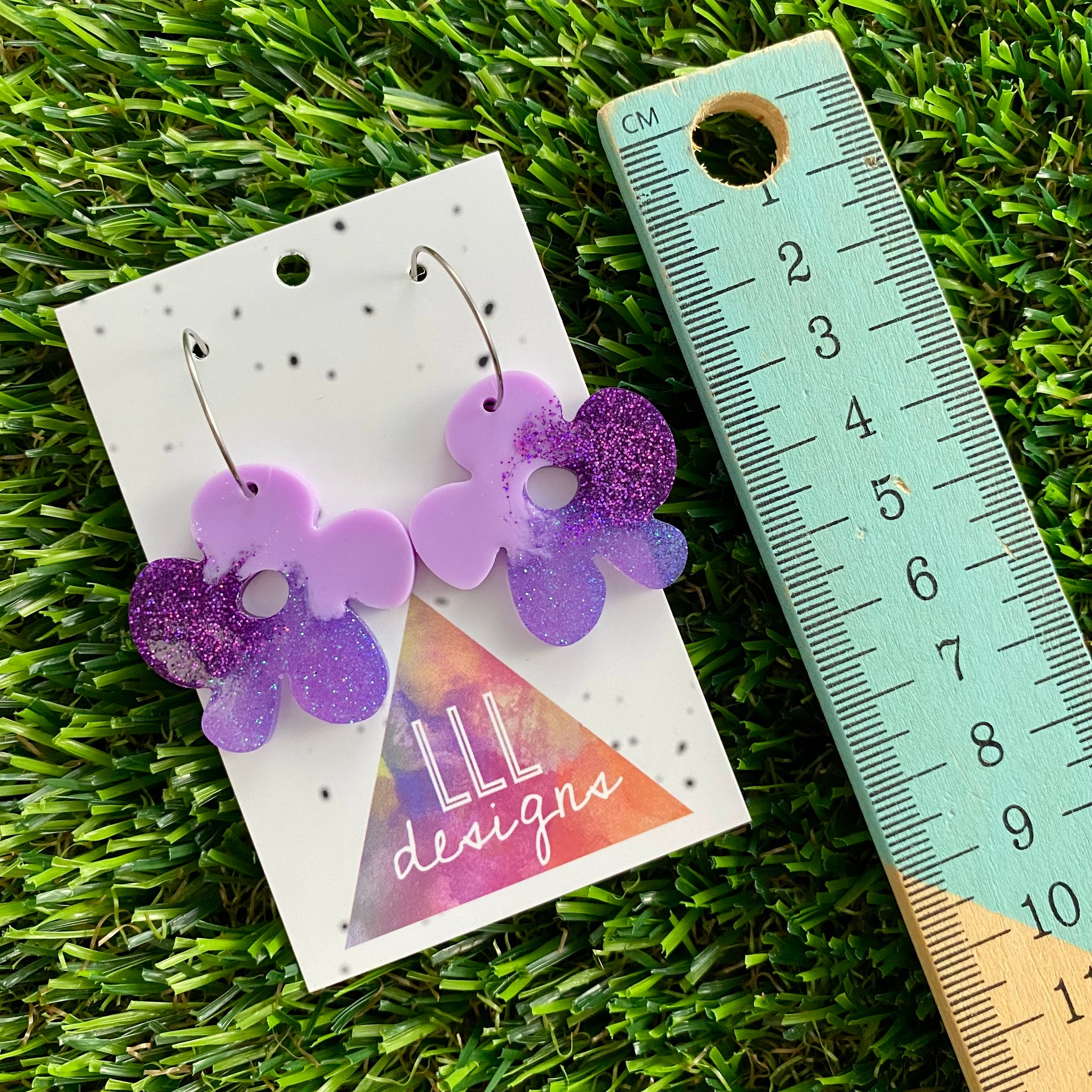 Resin Earrings - Purple Dream Asymmetrical Flower Featuring a Silver Hoop!