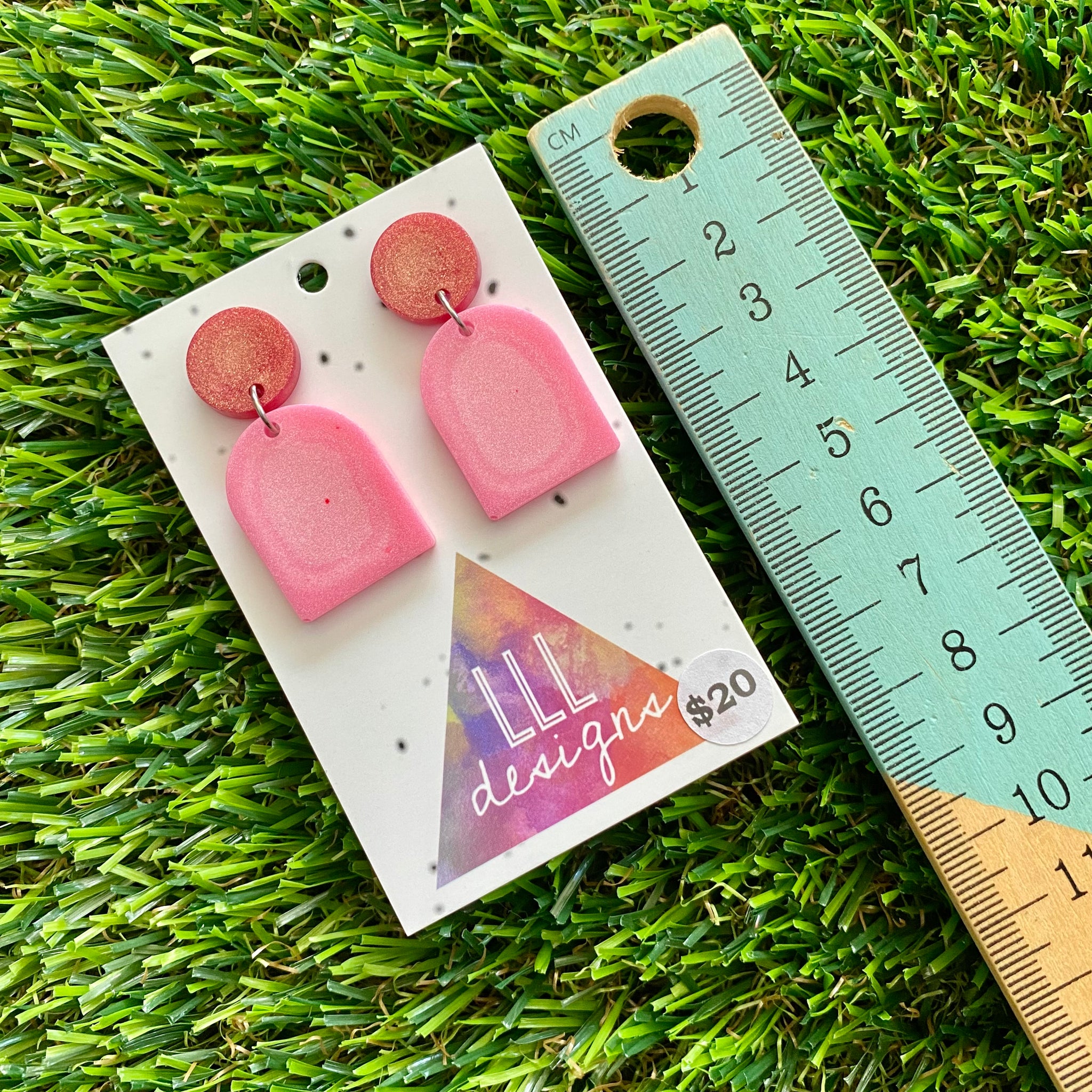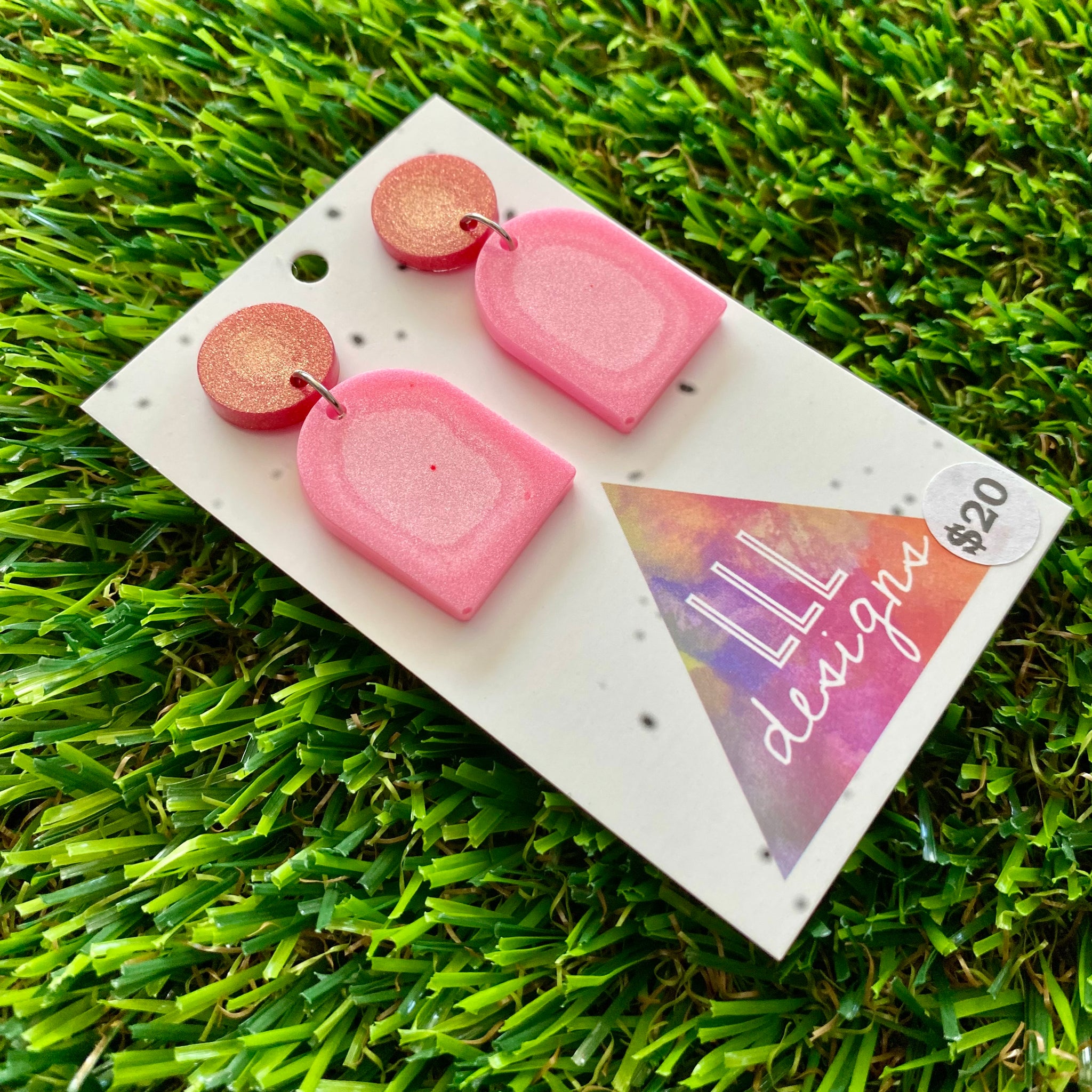 Resin Earrings - Red and Pink Pearl Design Dangles!