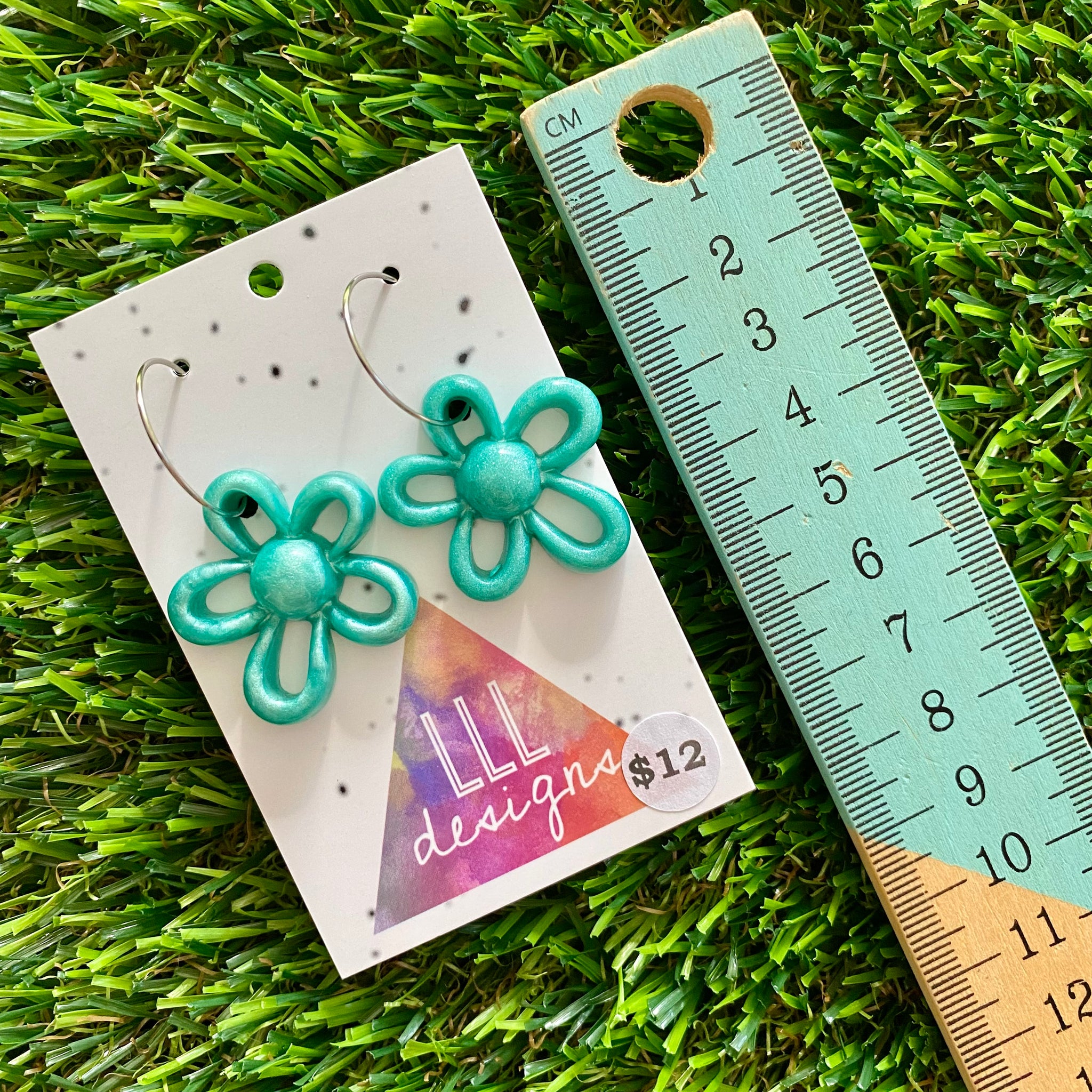 Resin Earrings - Teal Outlined Daisy Hoops!