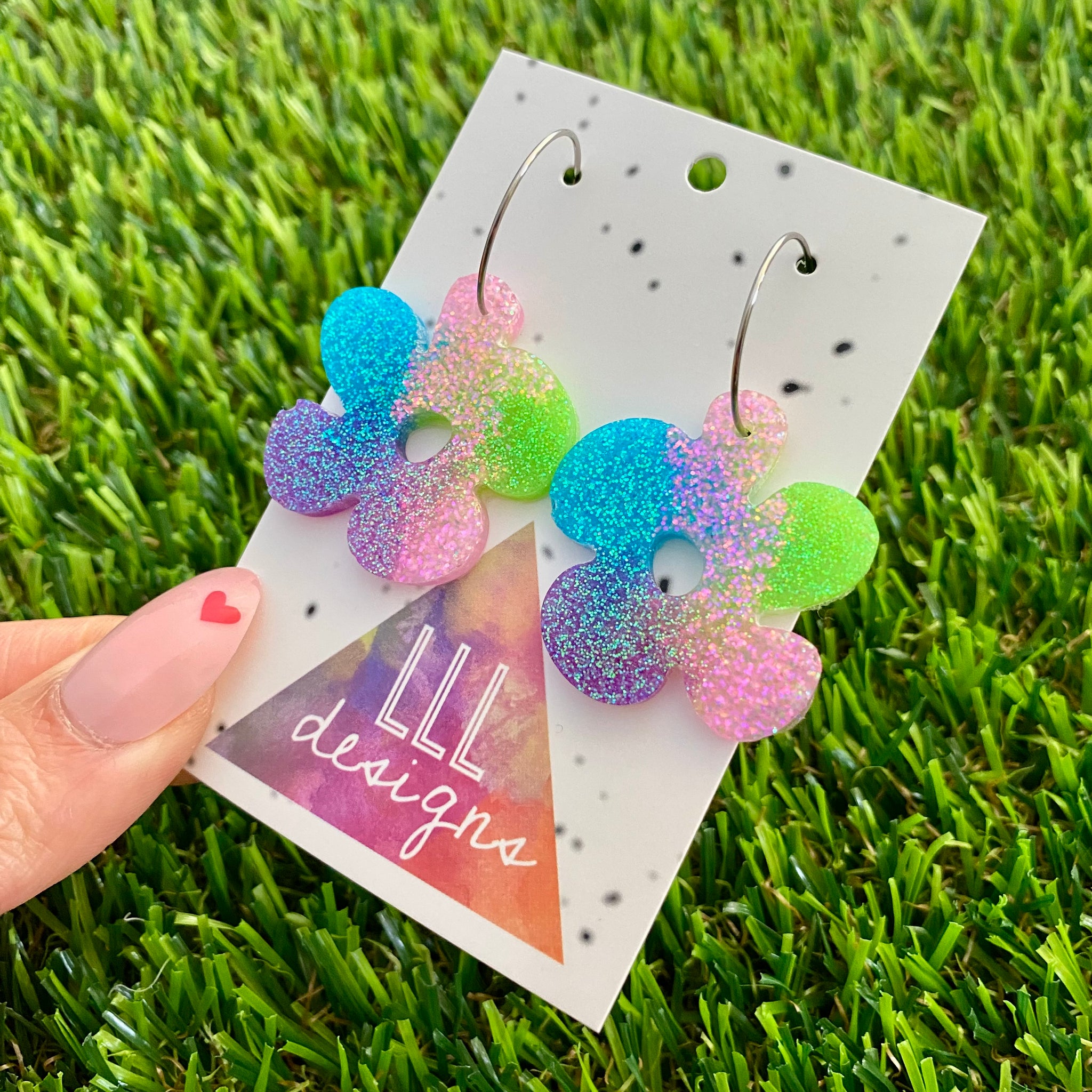 Resin Earrings - Vibrant Asymmetrical Flower Featuring a Silver Hoop! (4)