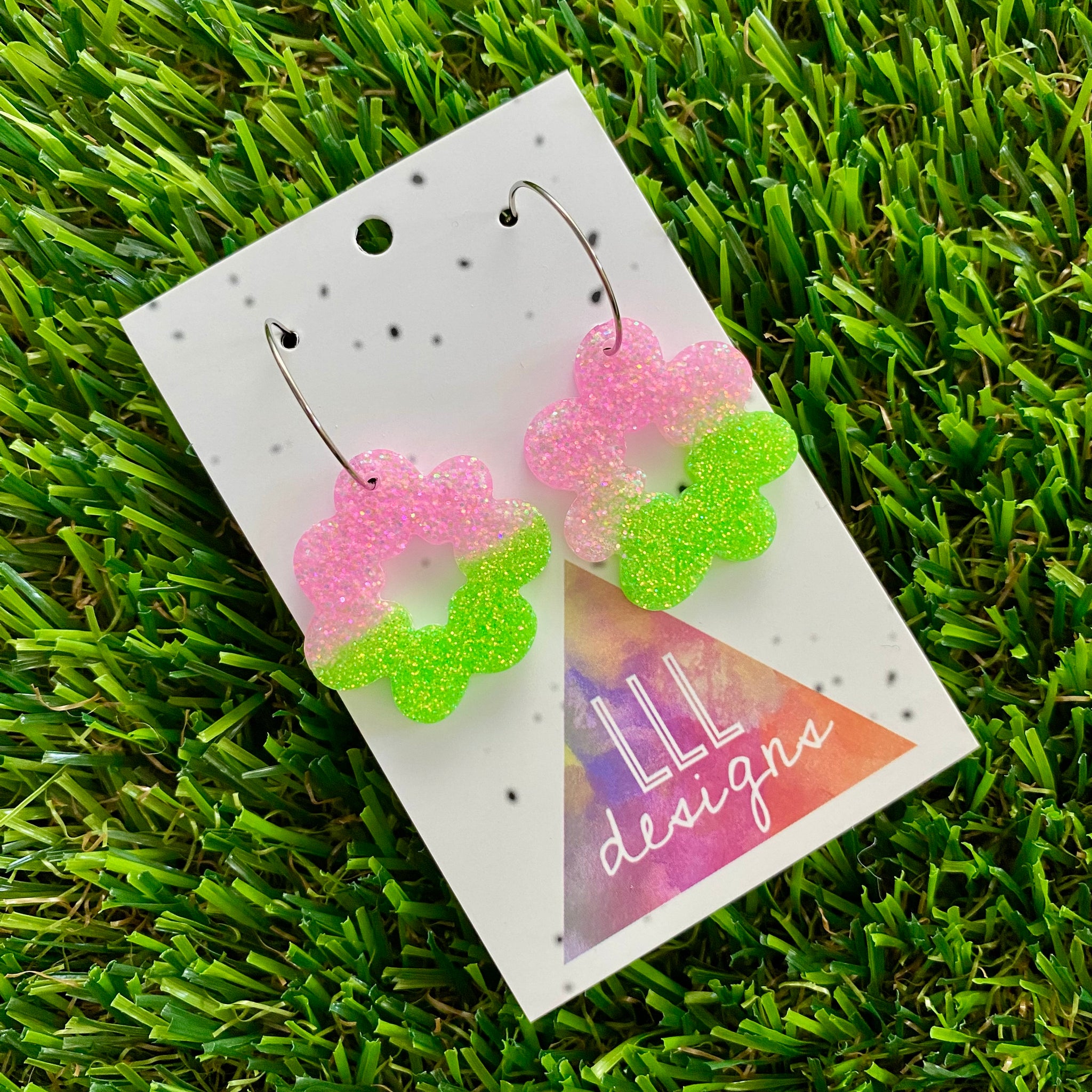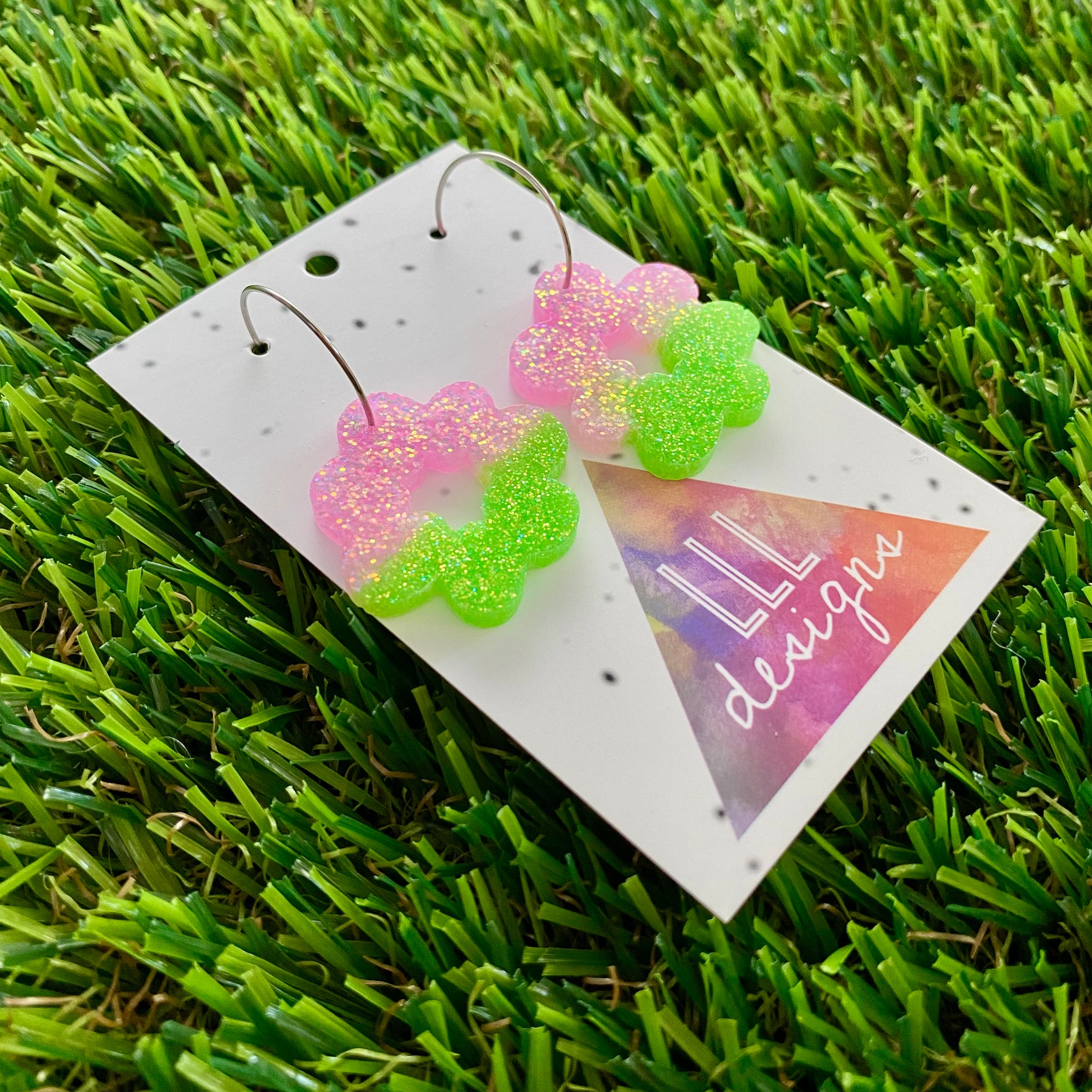Resin Earrings - Vibrant Floral Wreath Featuring a Silver Hoop! (1)