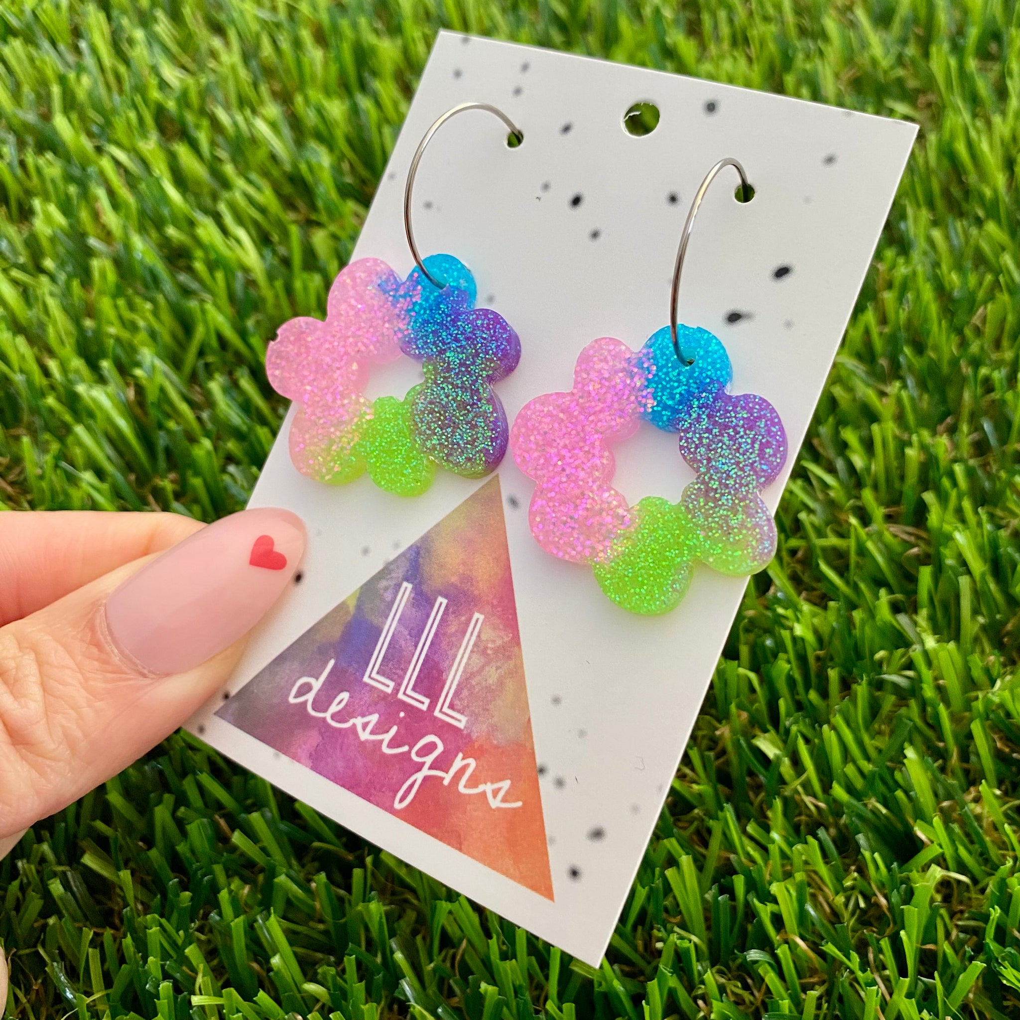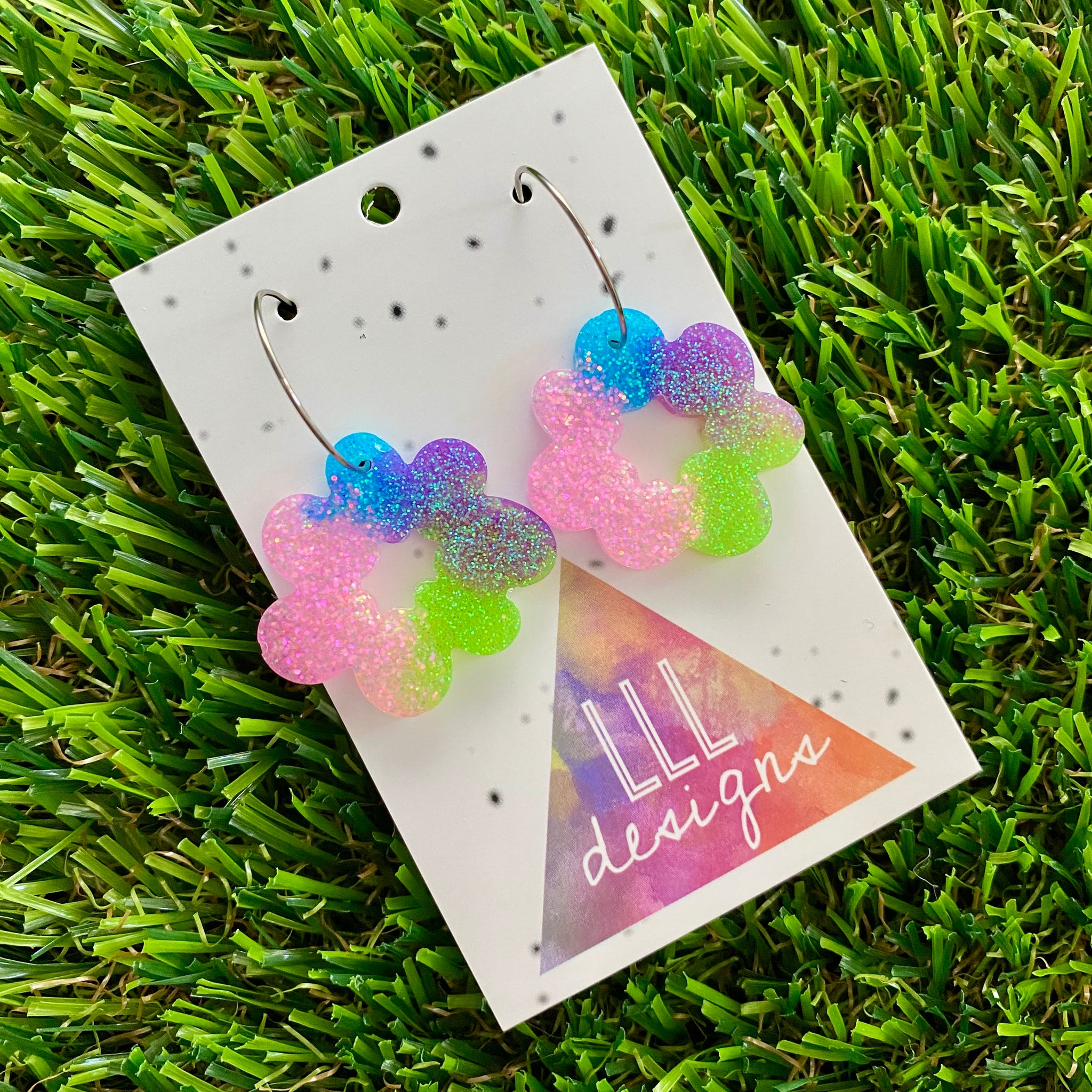 Resin Earrings - Vibrant Floral Wreath Featuring a Silver Hoop! (3)