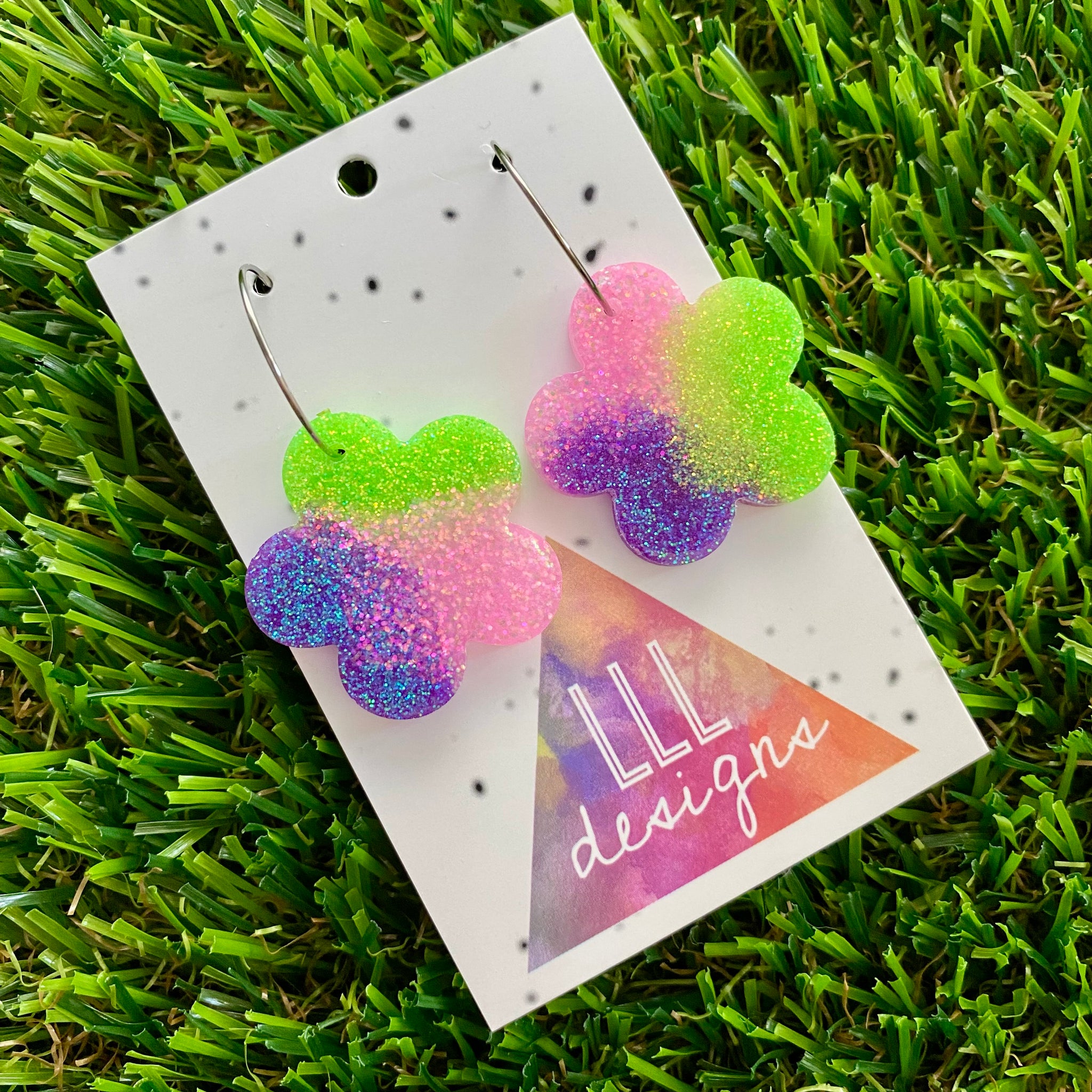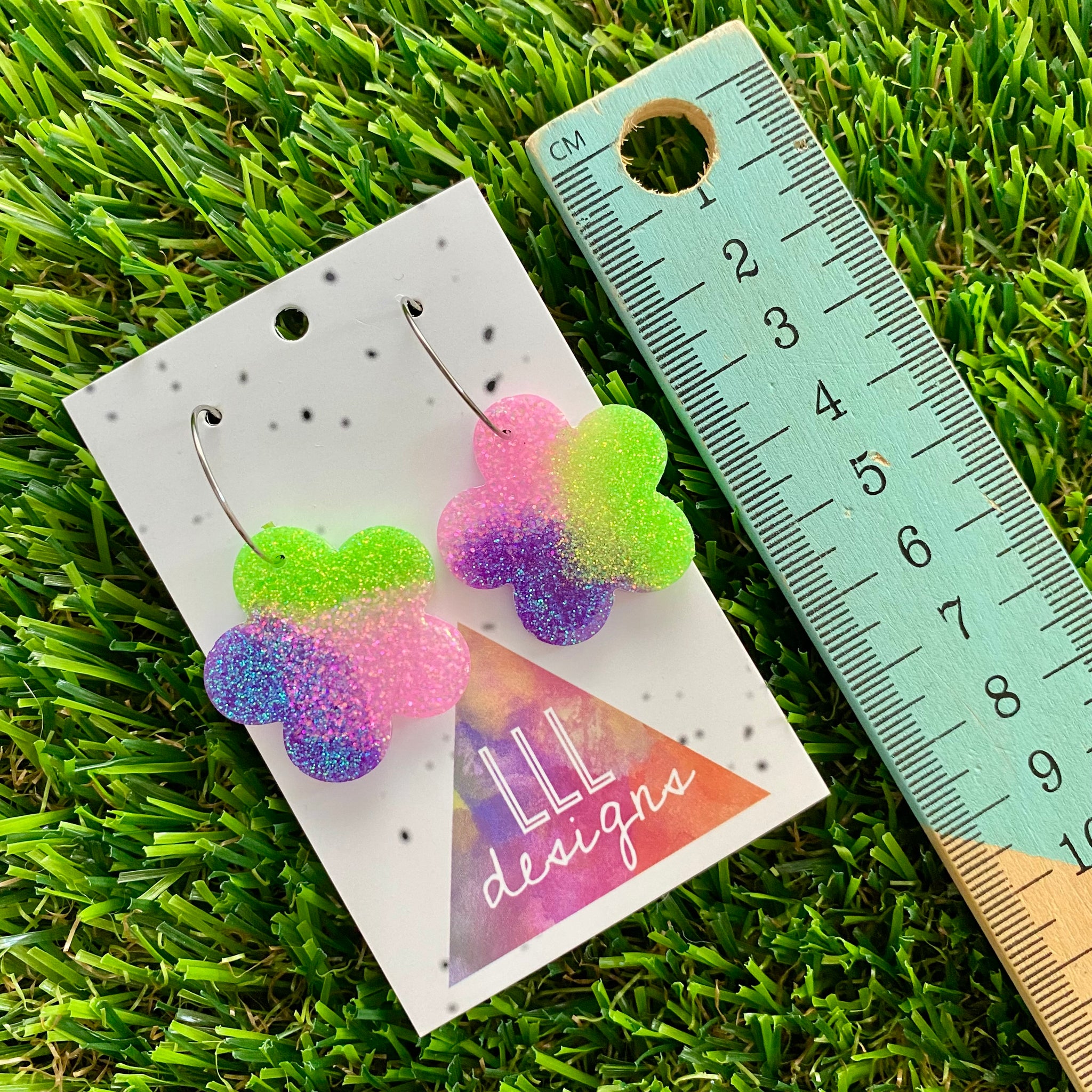 Resin Earrings - Vibrant Solid Daisy Featuring a Silver Hoop! (2)