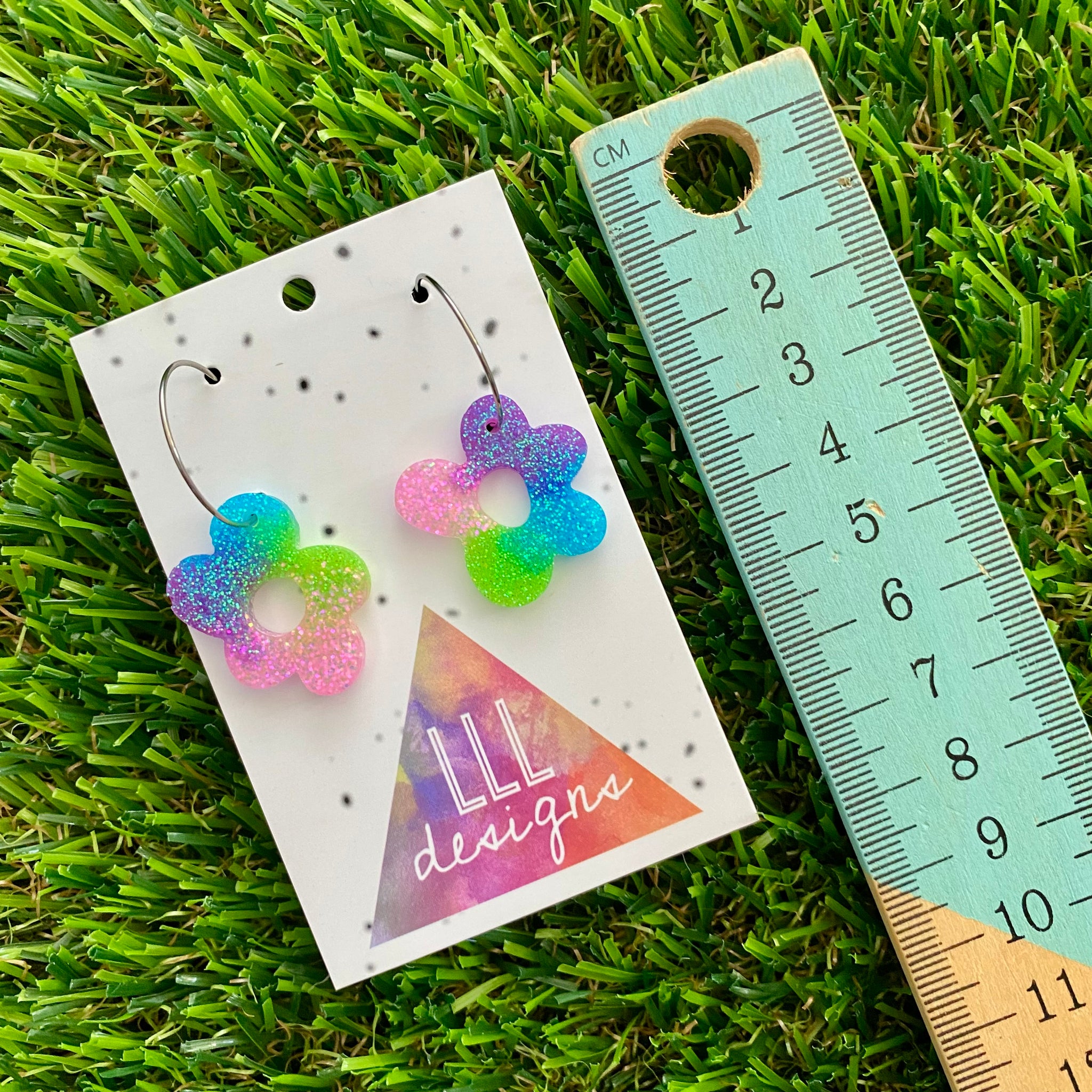 Resin Earrings - Vibrant Wonky Daisy Featuring a Silver Hoop! (2)