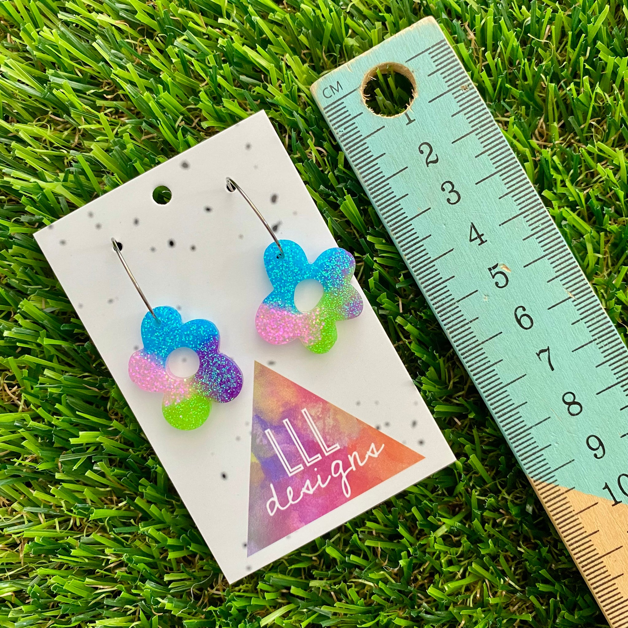 Resin Earrings - Vibrant Wonky Daisy Featuring a Silver Hoop! (3)