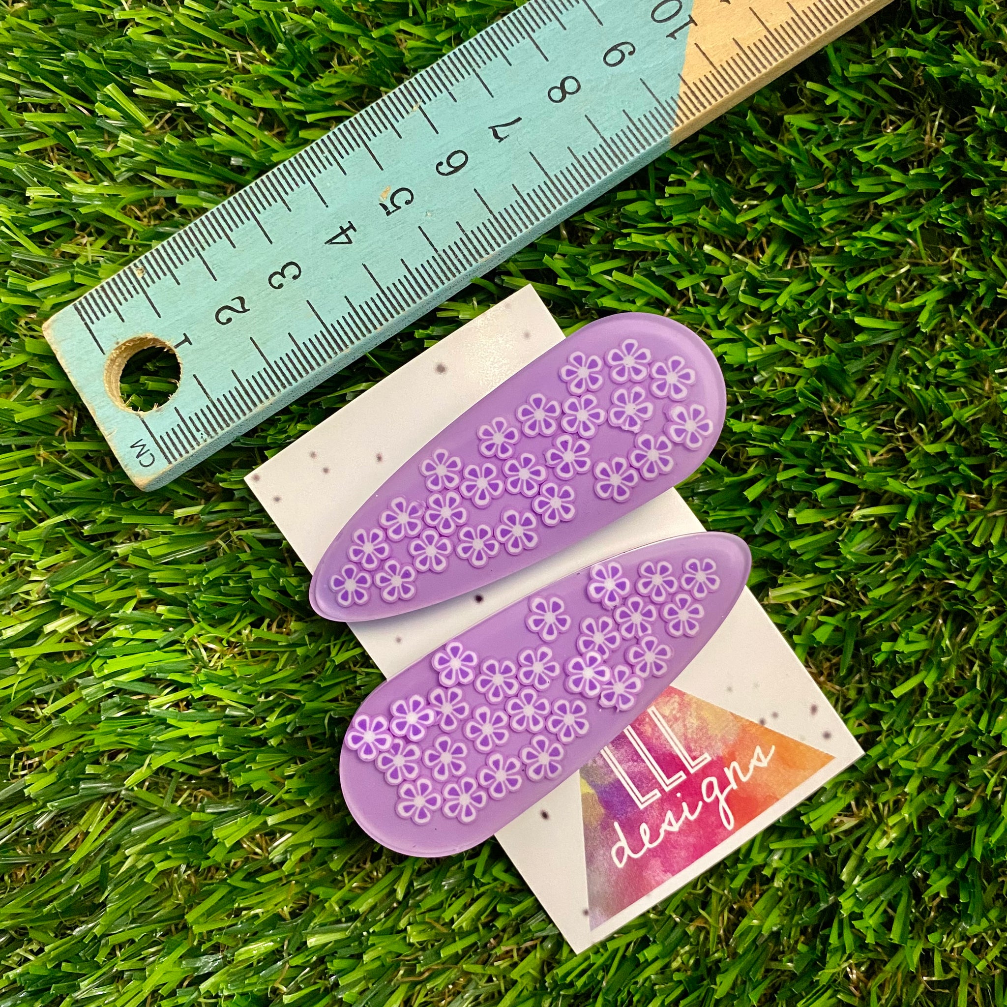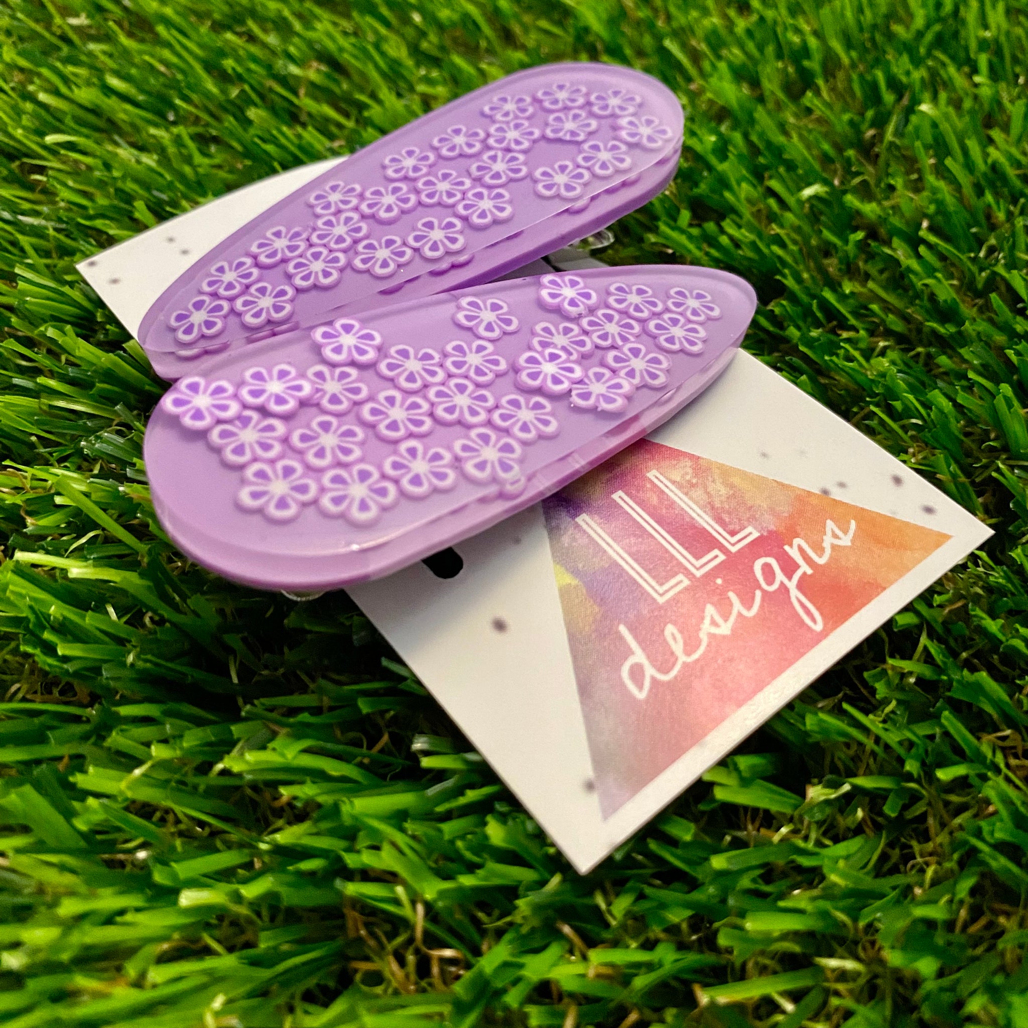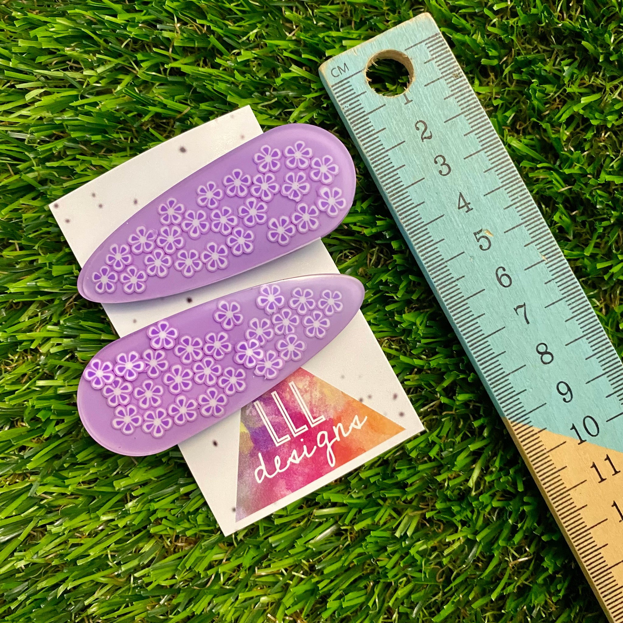 Resin Hair Clip - Monochrome Lavender Hair Clip Pair Featuring Hand Placed Lavender Daisies!