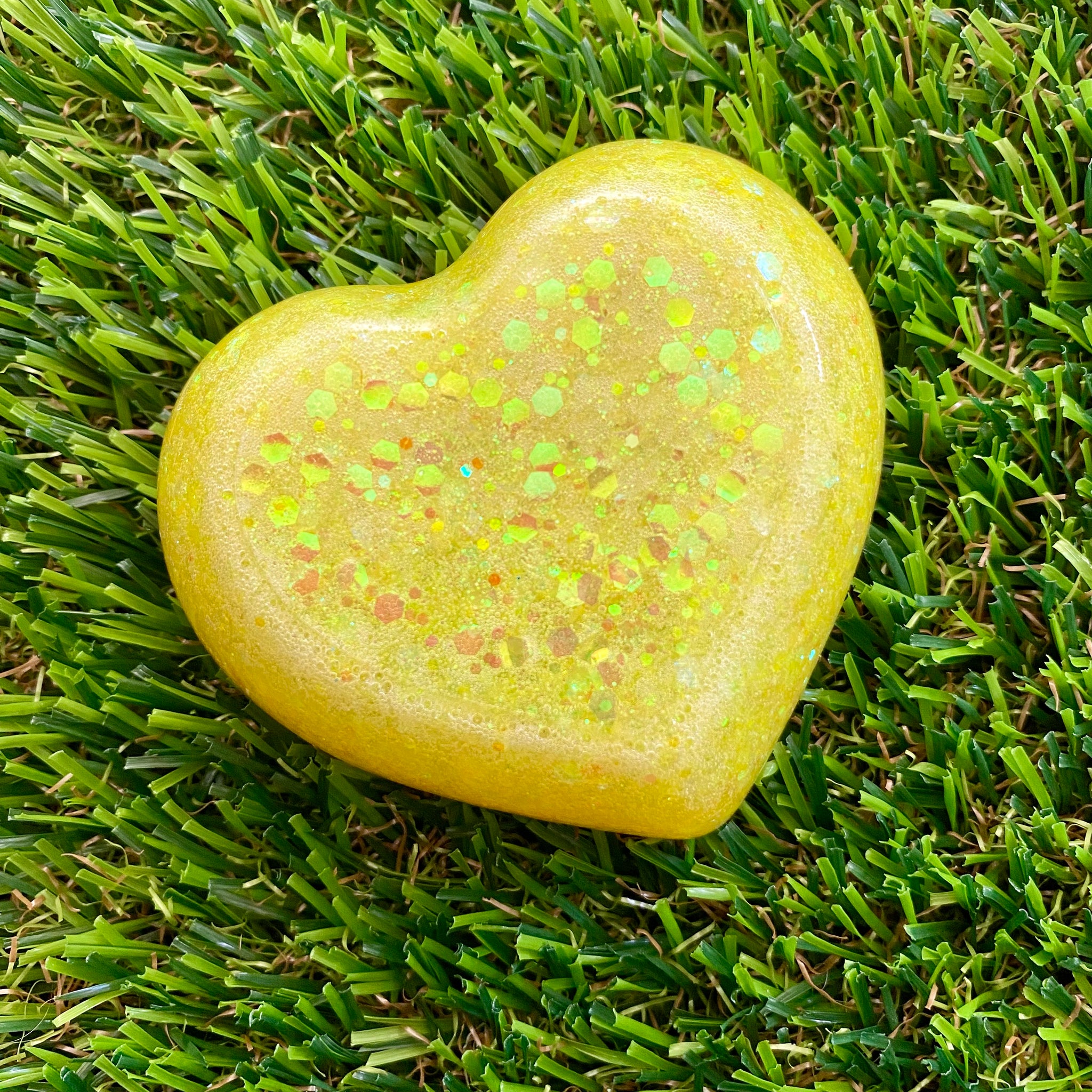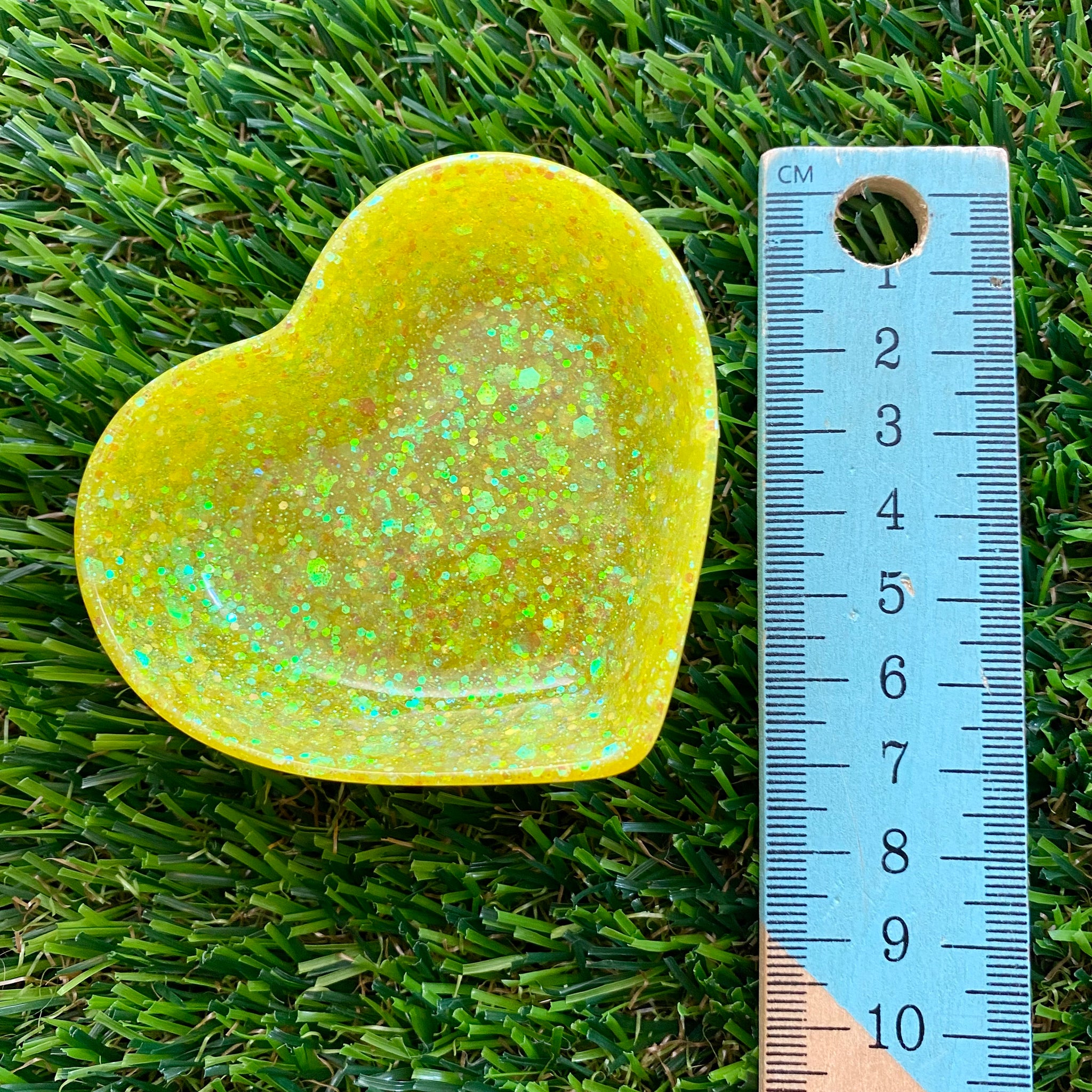 Resin Heart Dish - Chunky Yellow Glitter! Brighten Up Your Life with this Bold and Fun Piece!