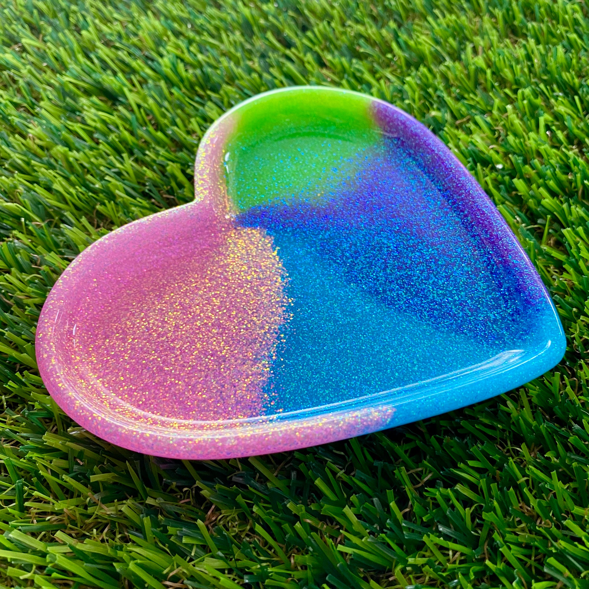 Resin Heart Tray - Glitter Neon Vibrant! Brighten Up Your Life with this Bold and Fun Piece!