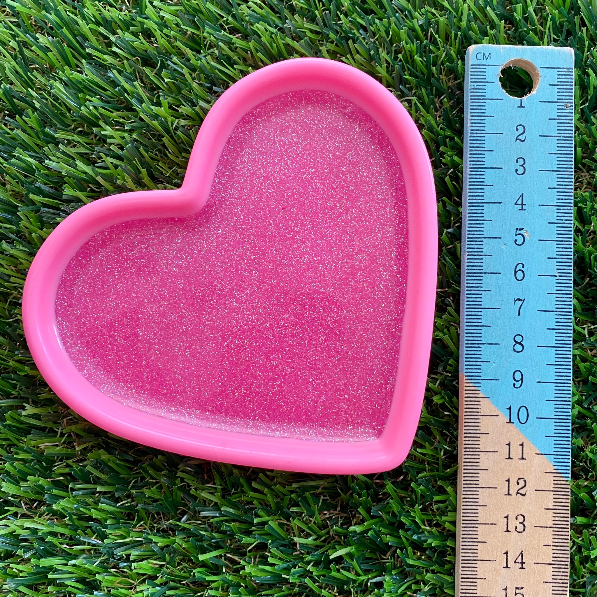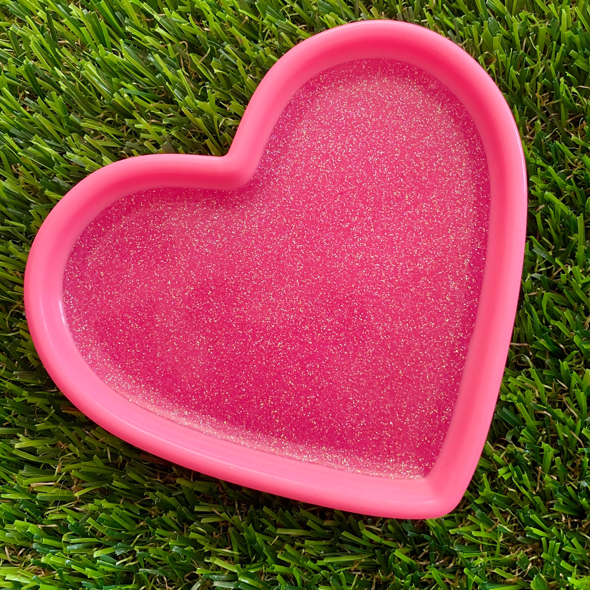 Resin Heart Tray - Two Tone Barbie Pink featuring a Glitter Pink Base and Bright Pink Border! Brighten Up Your Life with this Bold and Fun Piece!