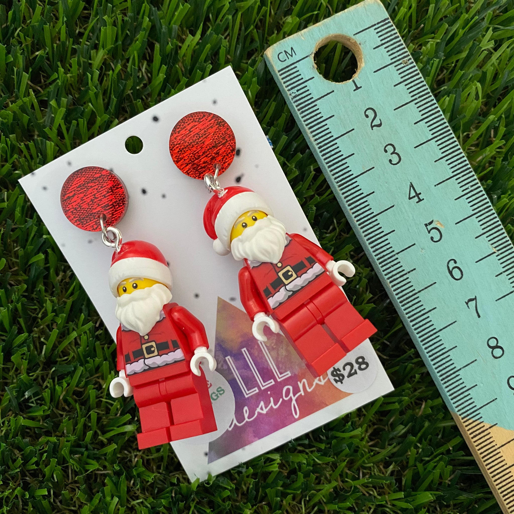 Santa Christmas Brick Earrings- Santa Festive Earrings, Featuring a Glitzy Red Top!