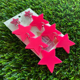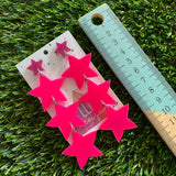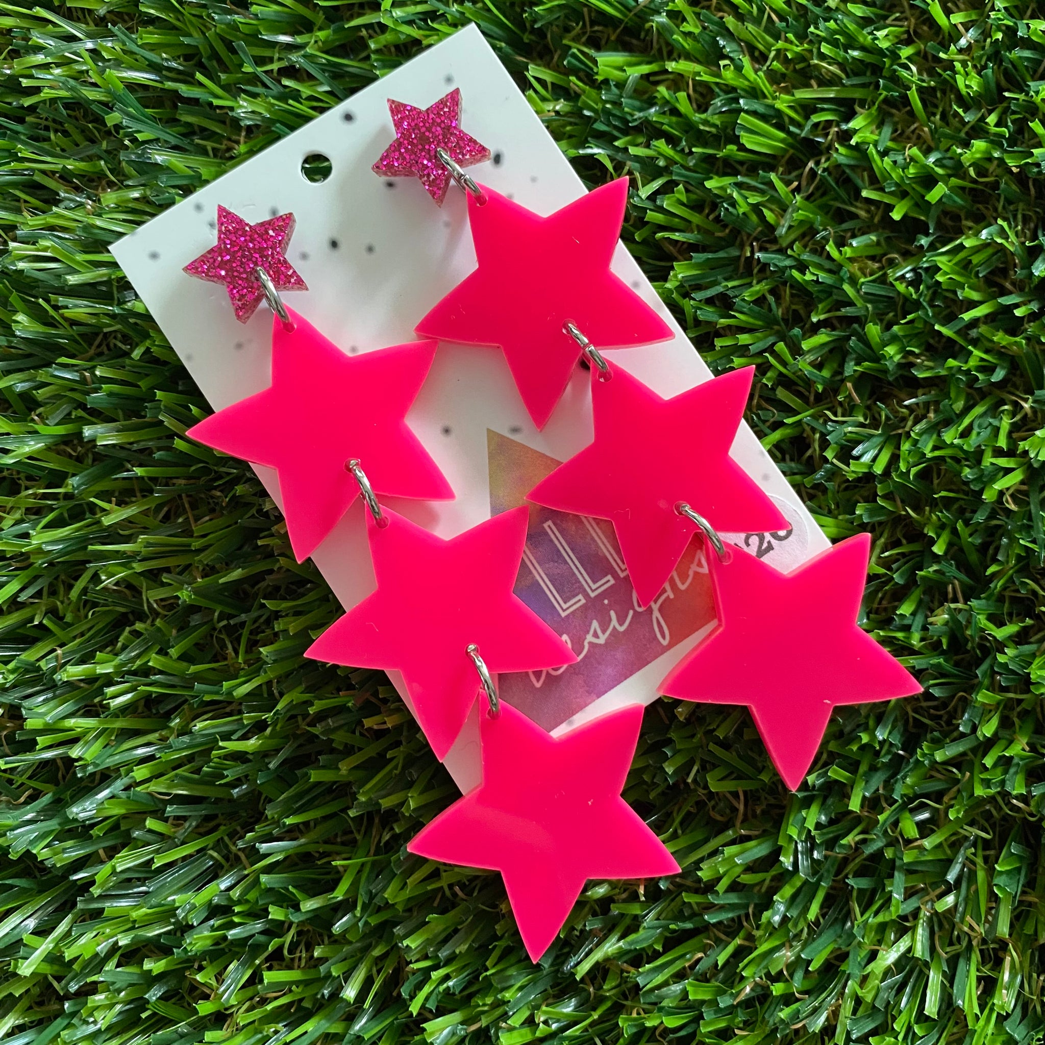 Star Earrings - Mega Pop Neon Trio of Stars with Glitter Pink Star Top!