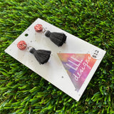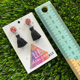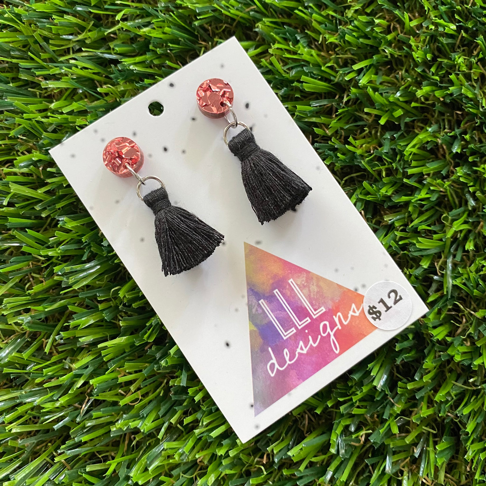 Tassel Earrings - Black Tassels with Dusty Pink Confetti Tops!