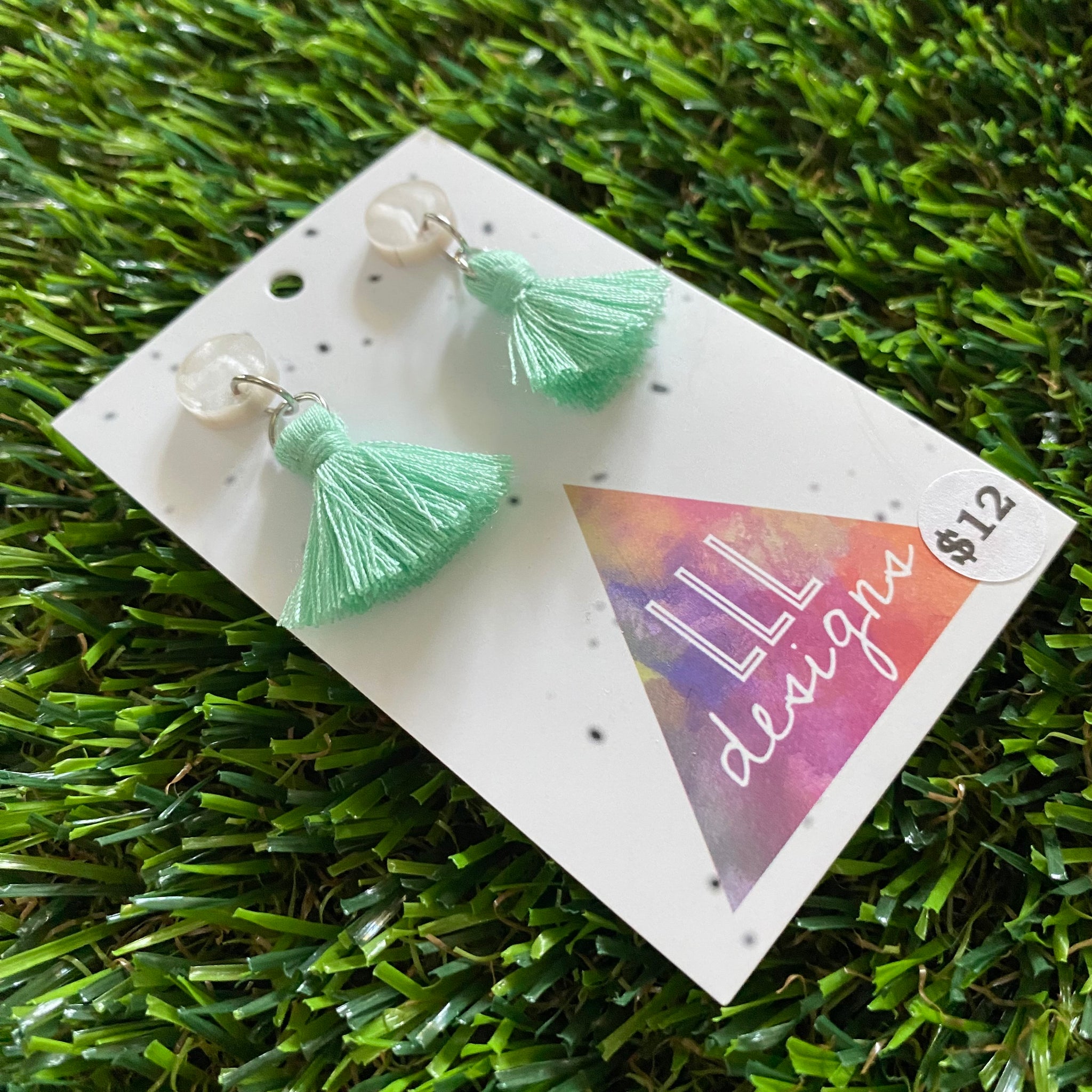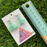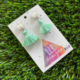 Tassel Earrings - Pastel Mint Tassels with Pearlescent Tops!