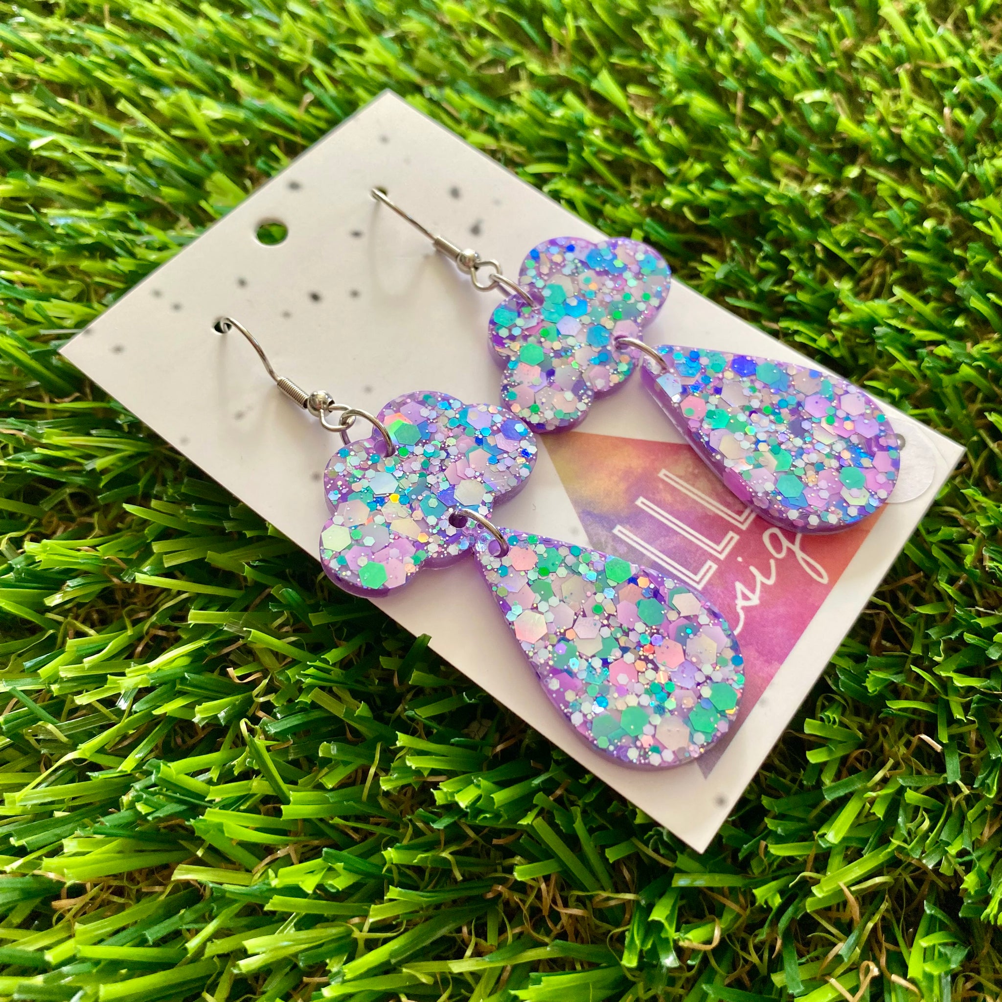 Weather Resin Earrings - Purple Multi Confetti Rain Featuring Hook Tops!